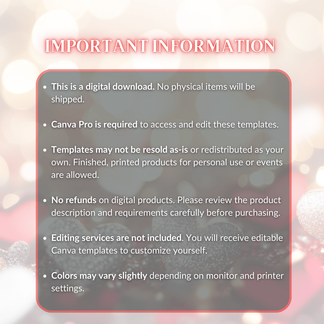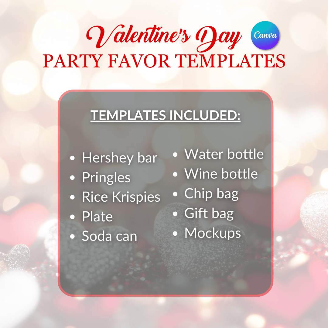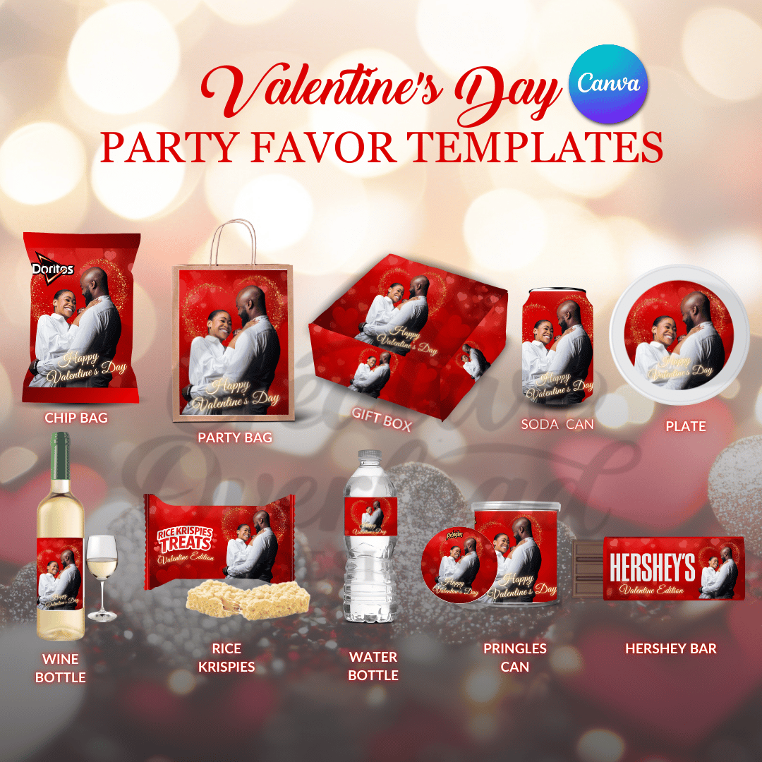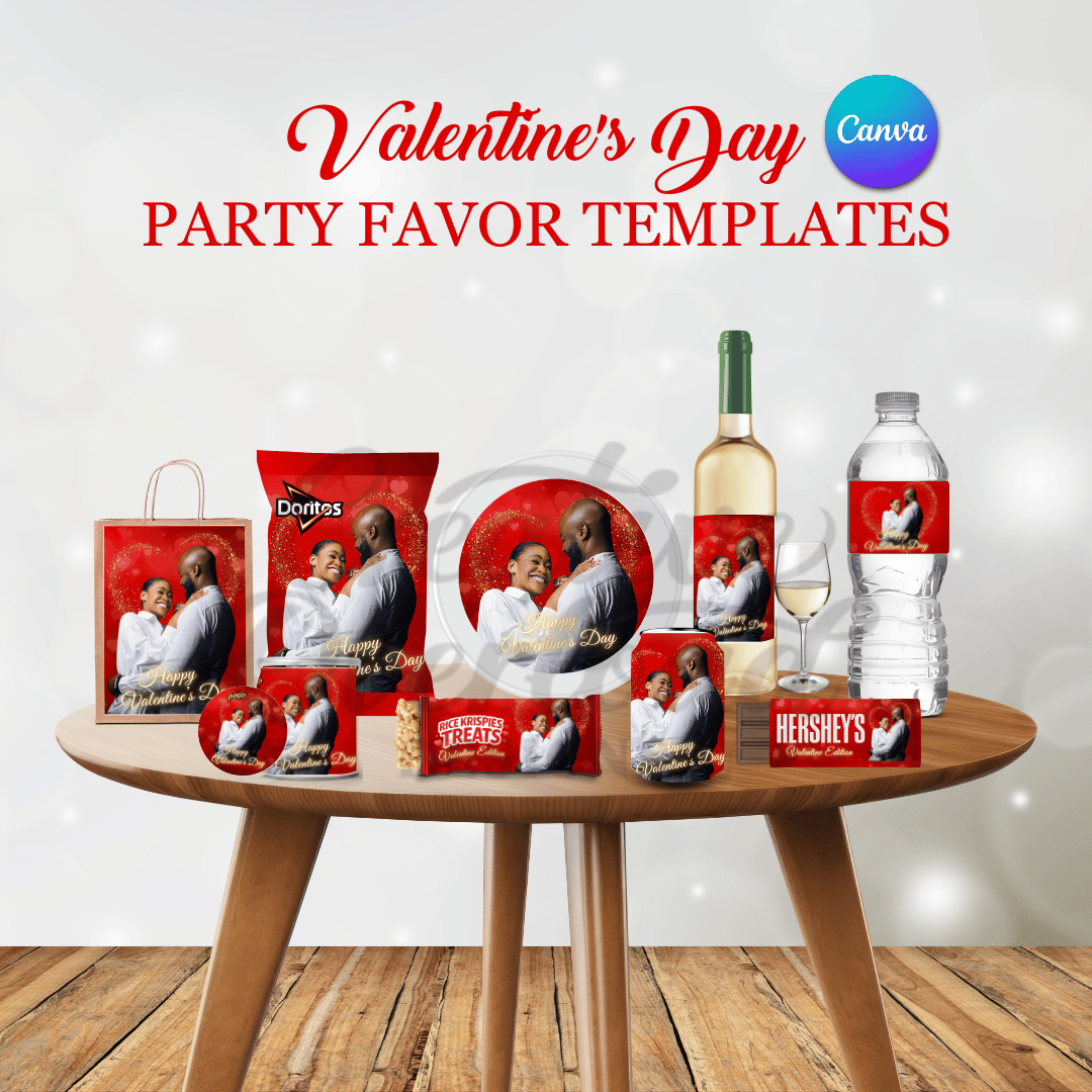 This bundle supports party favor sellers, DIY creatives, and anyone who loves thoughtful celebration. The clean layout coordinated red palette, and photo-forward design deliver a cohesive look across every item. Whether you are prepping for a small dinner or selling finished favors in your shop, these templates help you move confidently from idea to execution.