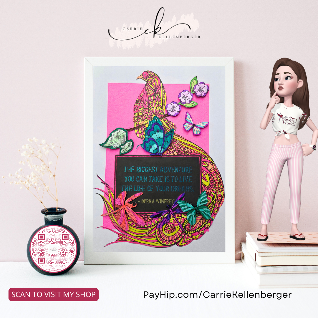 My paper cutting technique adds an extra 3D dimension of beauty and intricacy to each design, making my collages a delightful keepsake.They’re meant to brighten any space: an office cubby, a senior’s bedside, a child’s room, a sunny kitchen, or anywhere your heart desires.