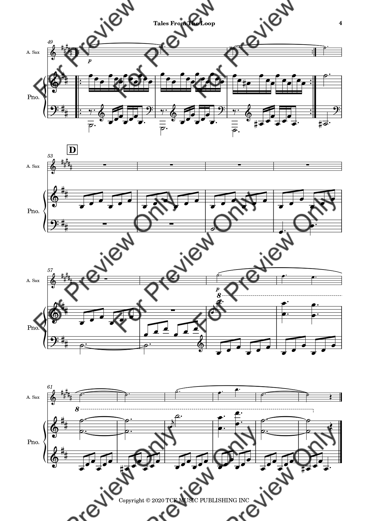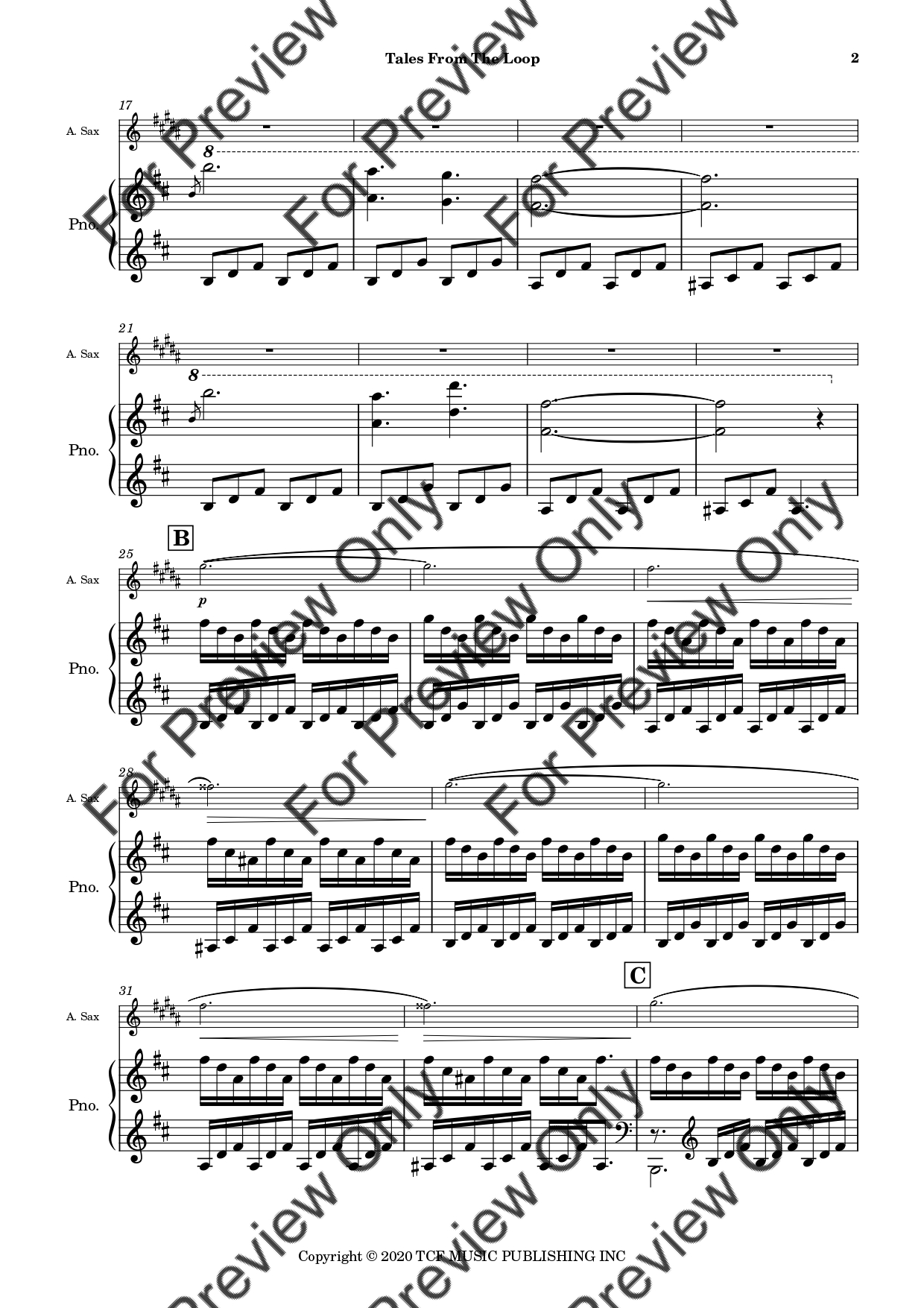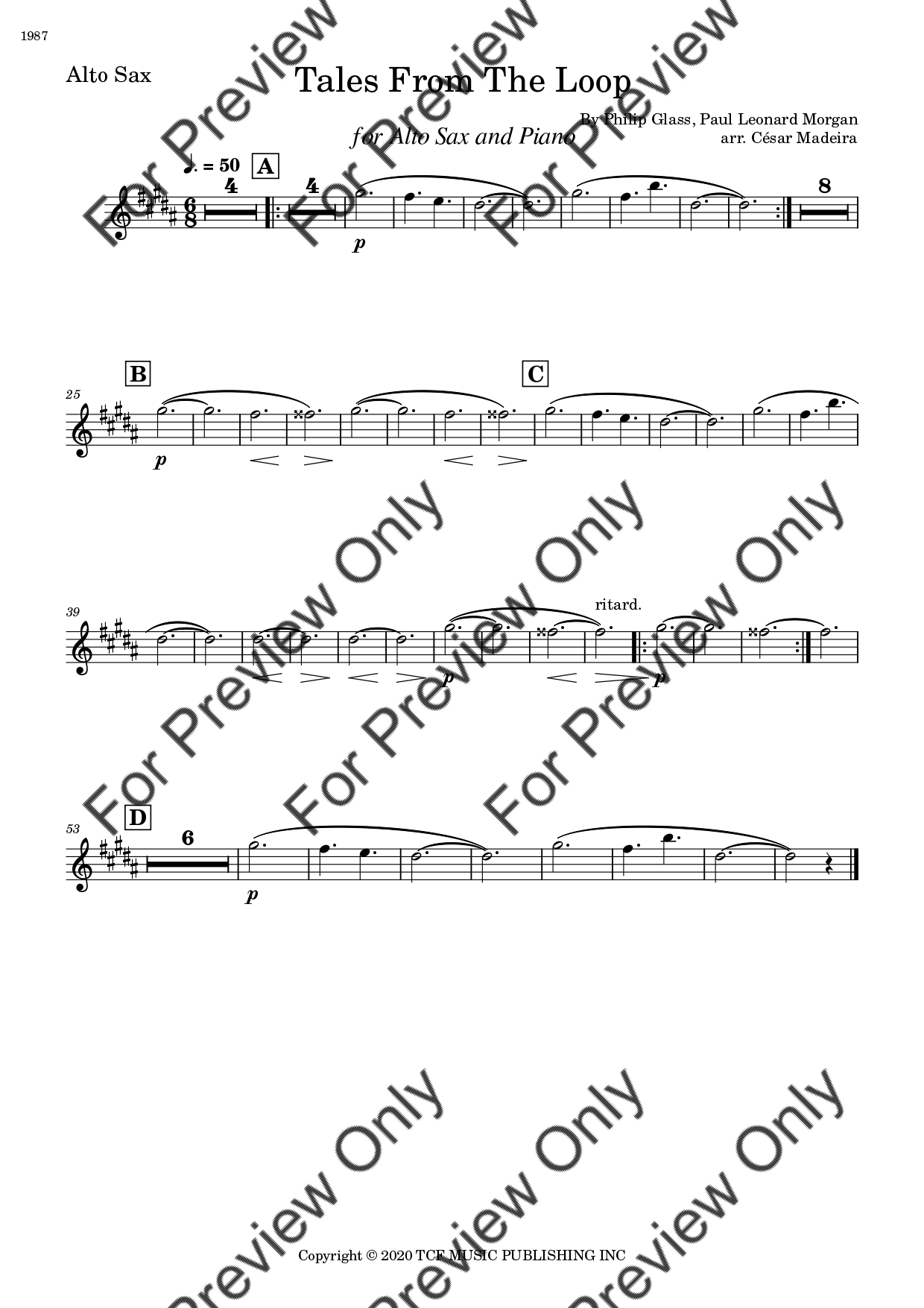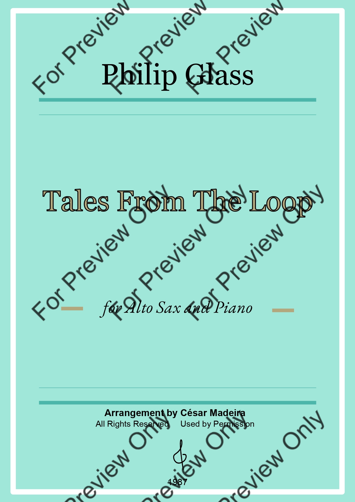Tales From The Loop by Philip Glass. Arrangement for Alto Saxophone and Piano. With Full Score and Individual Parts. Have fun!