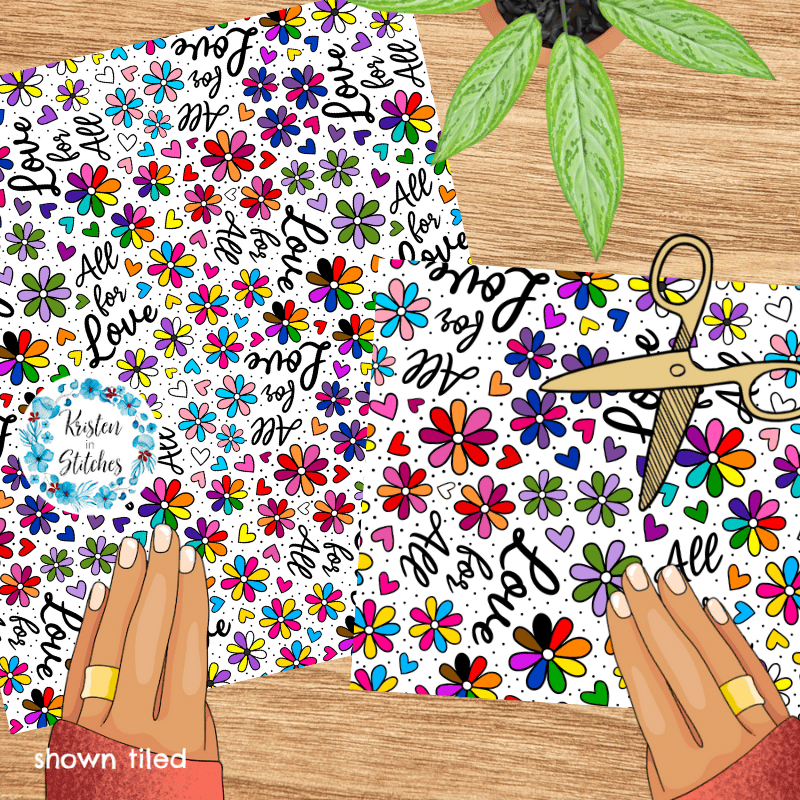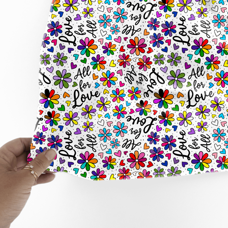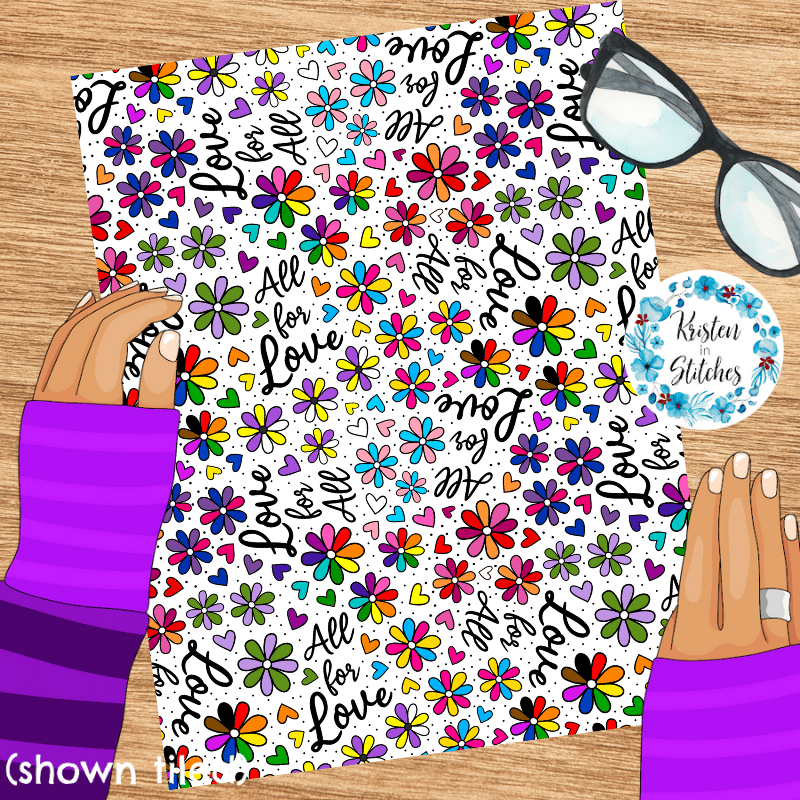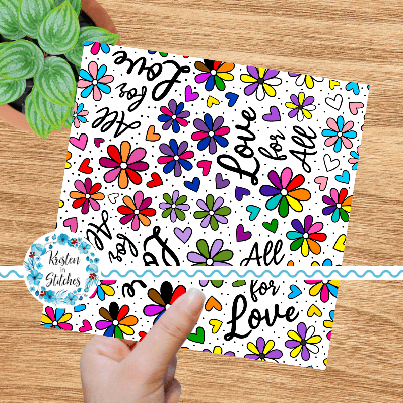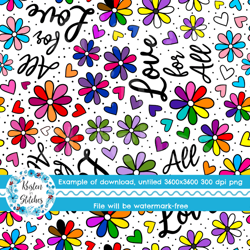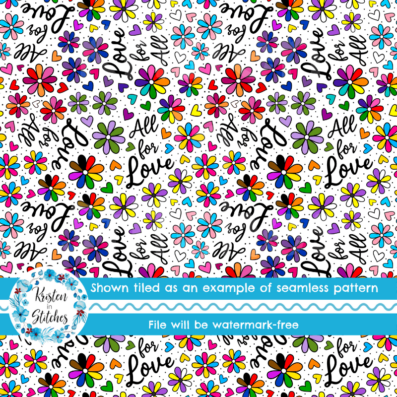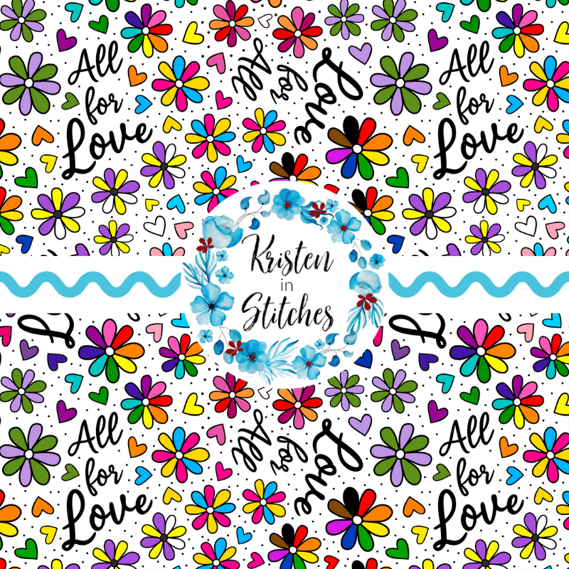 All for Love and Love for All, with daisy flowers in pride flag colors.