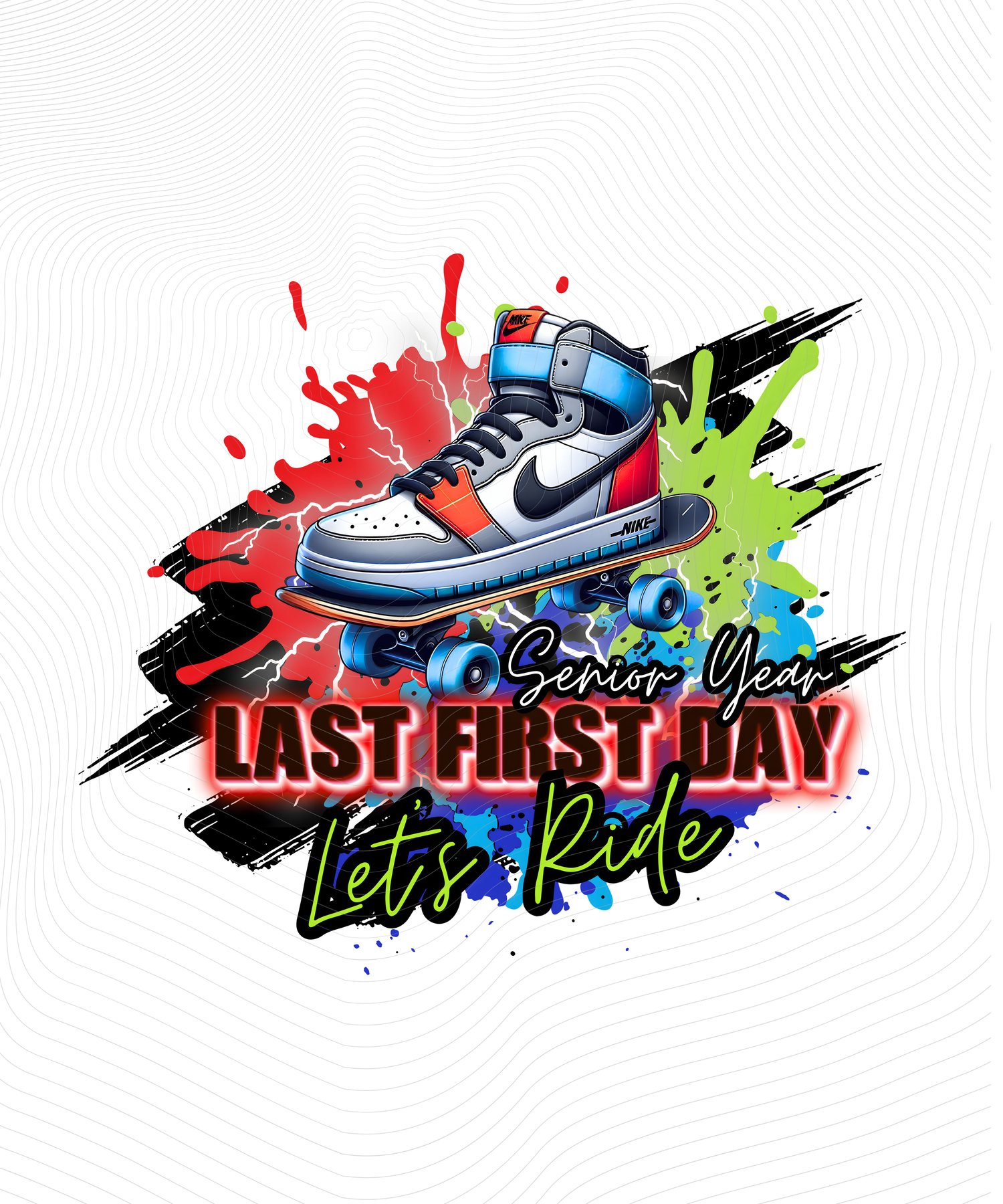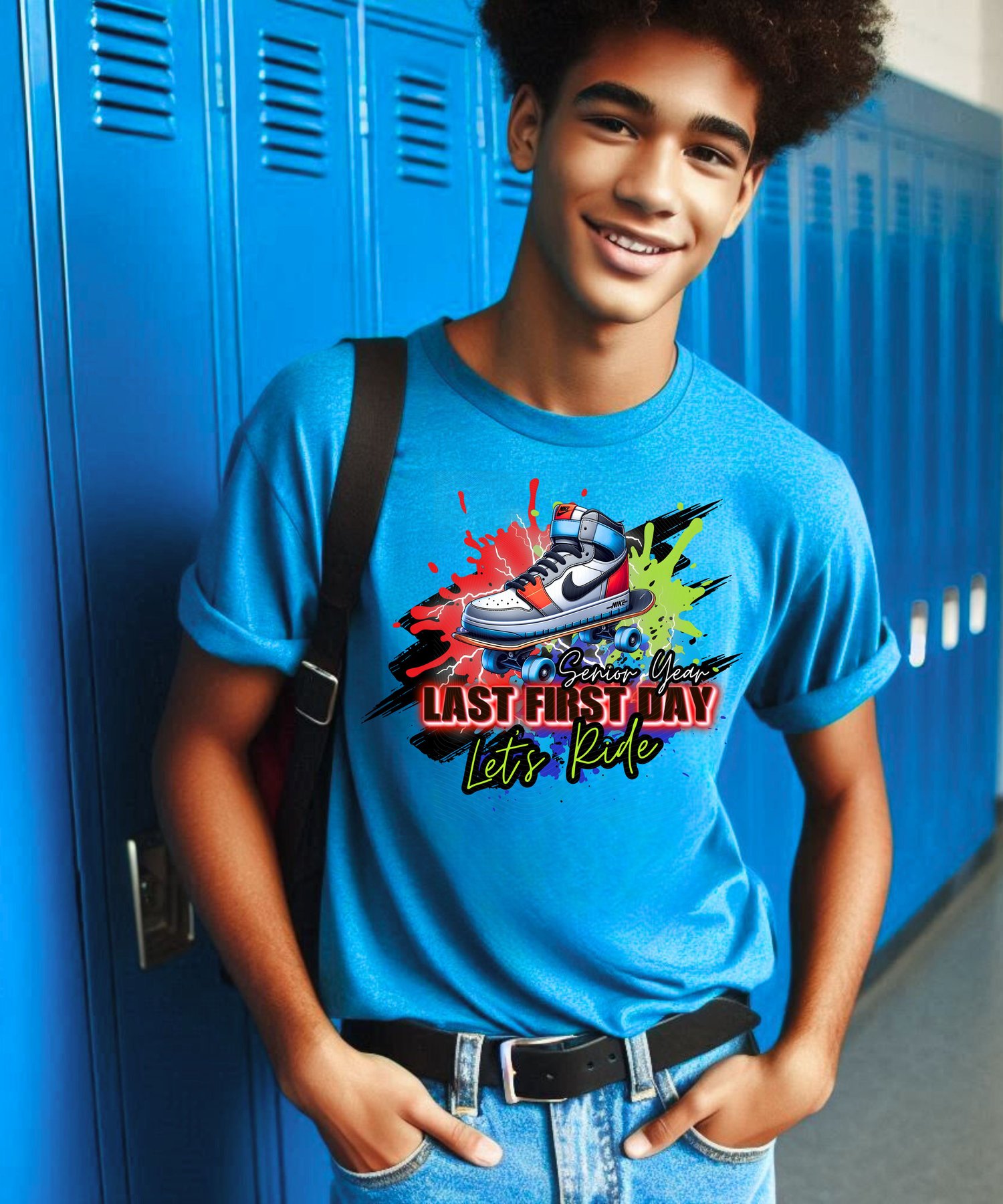 Roll into your final first day with style! This bold and vibrant “Senior Year – Last First Day – Let’s Ride” design is made for the seniors who are ready to turn heads, take names, and leave their mark. Make your Senior Year the most iconic yet. Let's ride into greatness — in style.