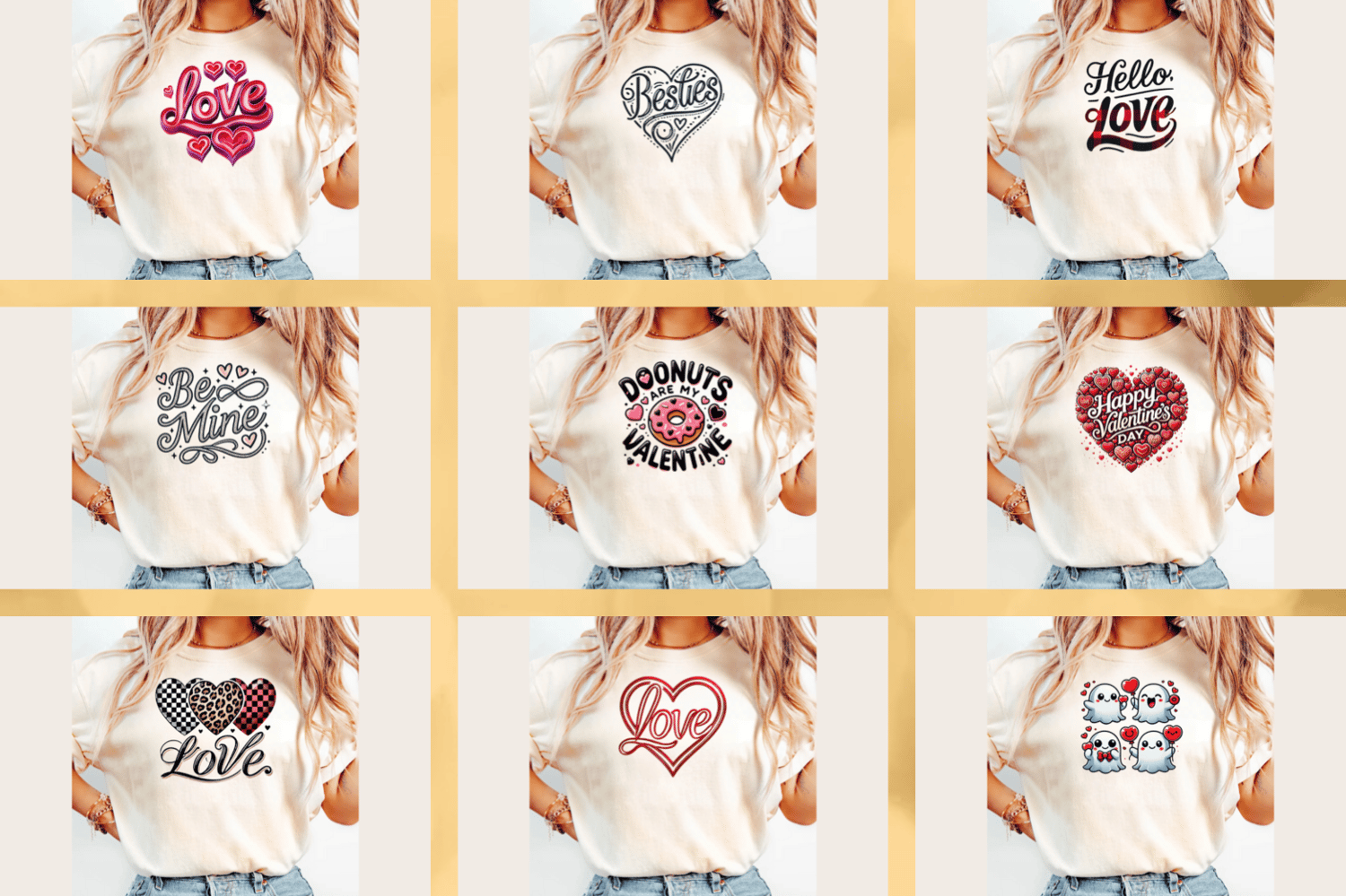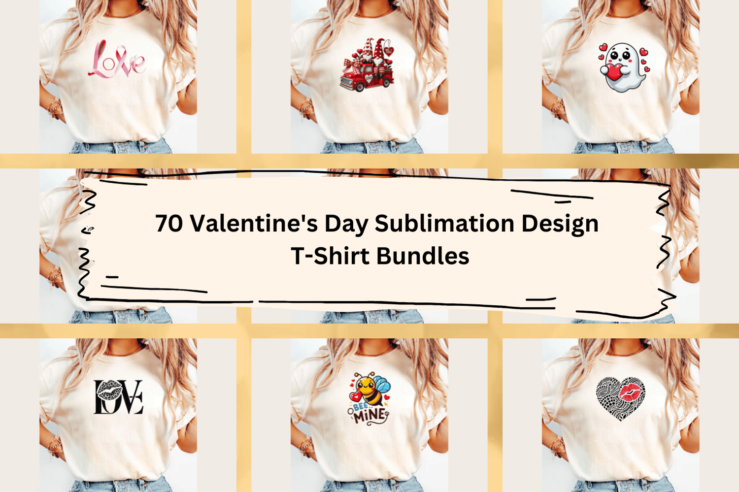 Sublimation Design: 70 Valentine's Day T-Shirt Bundles - High-Quality 300 DPI Digital Download
