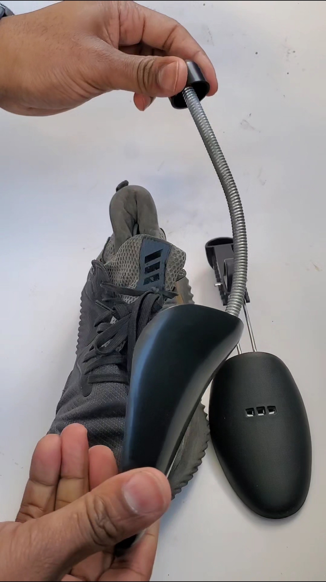 Think of it as a skeleton for shoes Spring-loaded shoe trees are flexible and adapt instantly to the size or model of any sneaker shoe or boot.