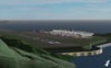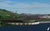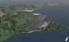 -Basic scenery, including mountainous terrain and contours resembling the nearby island terrain.