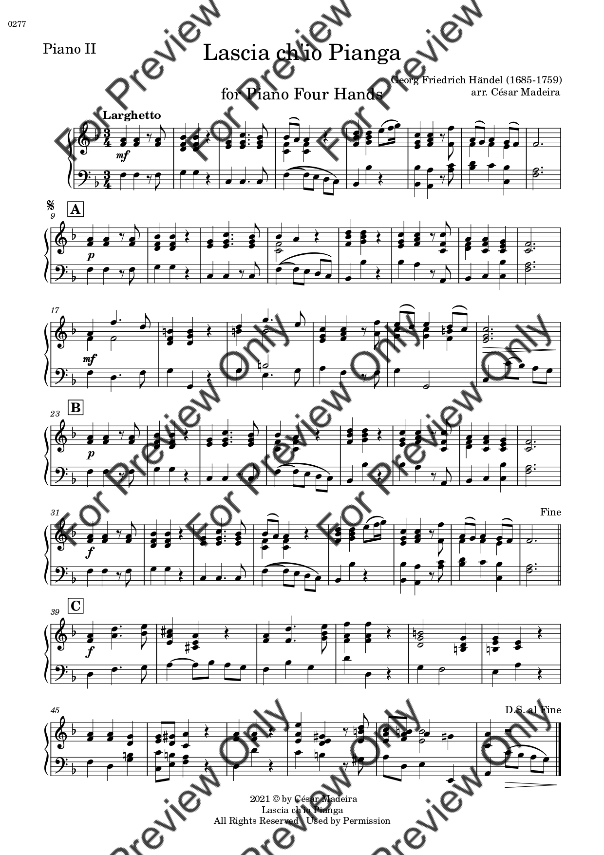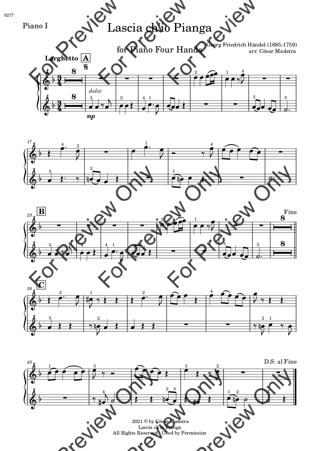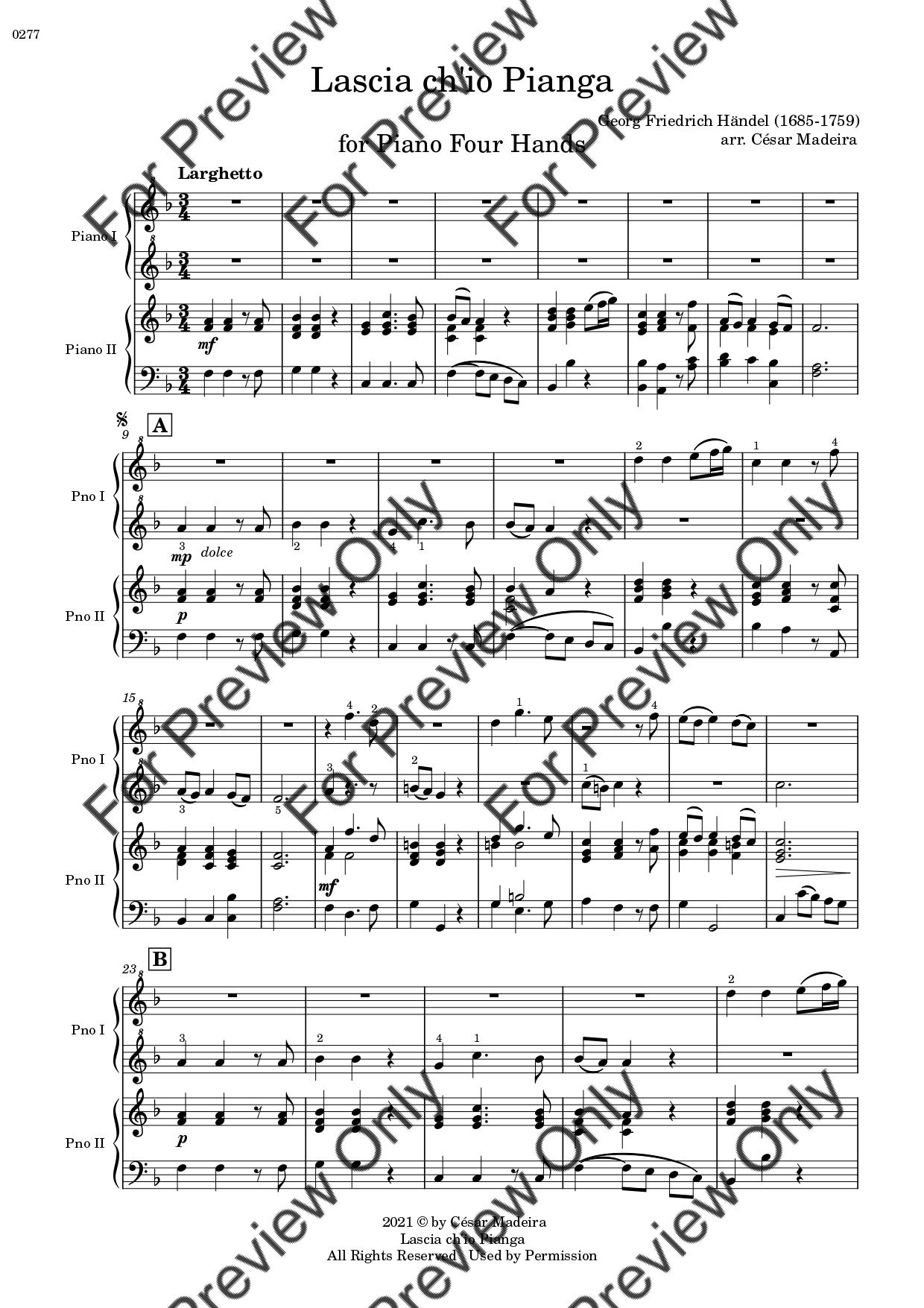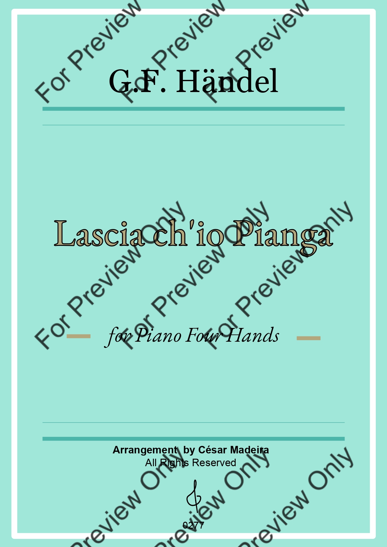 Lascia Ch'io Pianga by Georg Friedrich Handel. Arrangement for Piano Four Hands. With Full Score and Individual Parts. Have fun!
