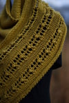 The Lace Panel is worked alongside a wedge of reverse stockinette to form the bandana shape.
