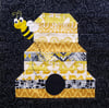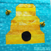 This bee hive block can be used alone in a pillow, mini quilt, tote bag, or mug rug, or used in a wall hanging, table runner, or quilt with or without alternate blocks.