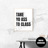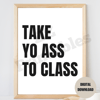 Take Yo Ass To Class Print Preppy College Student Motivational Quote Poster White Black Dorm Decor Printable Wall Art Digital Download JPEG