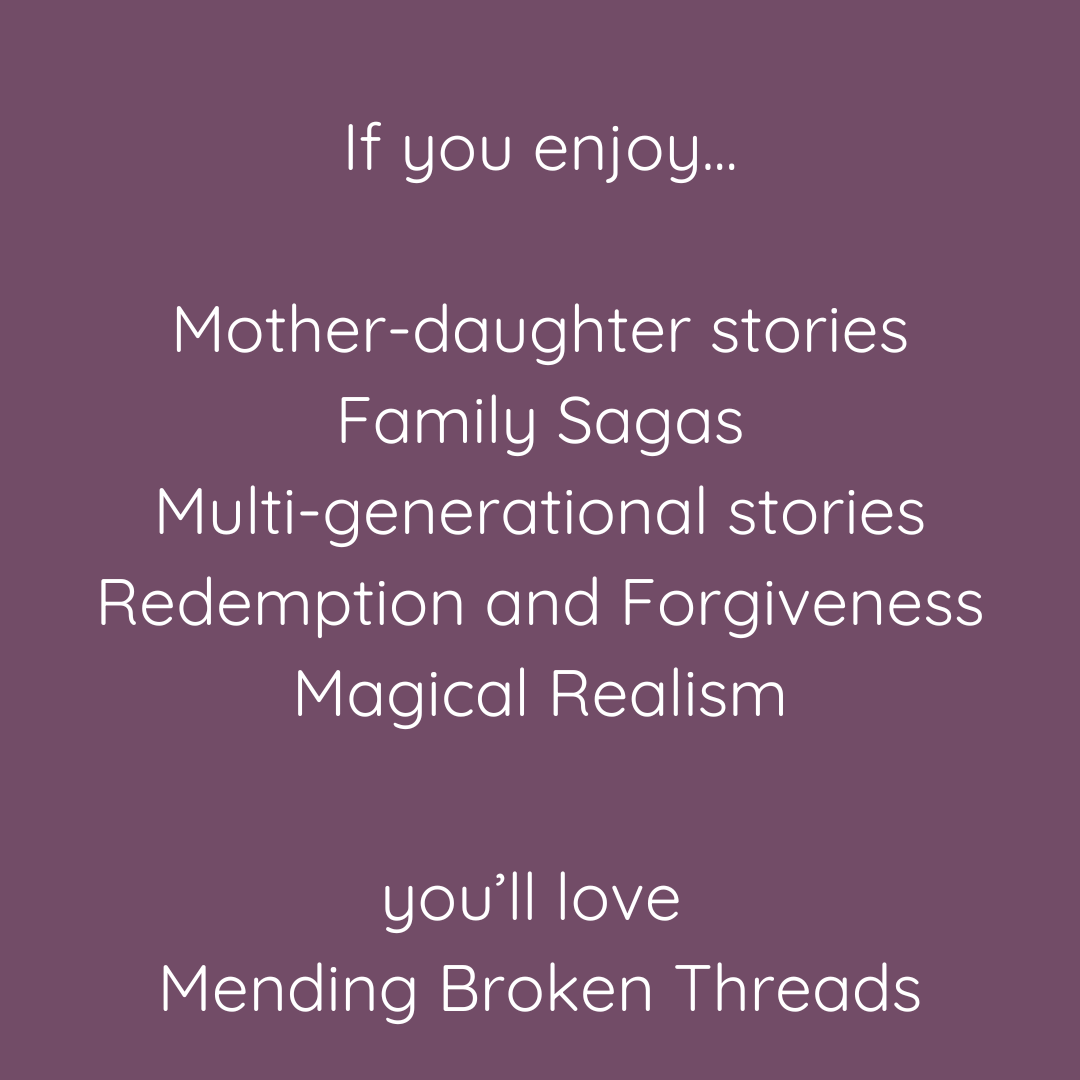 If you adore mother-daughter stories, heartwarming relationships, and transformative journeys, you’ll love this women’s fiction novel Mending Broken Threads.
