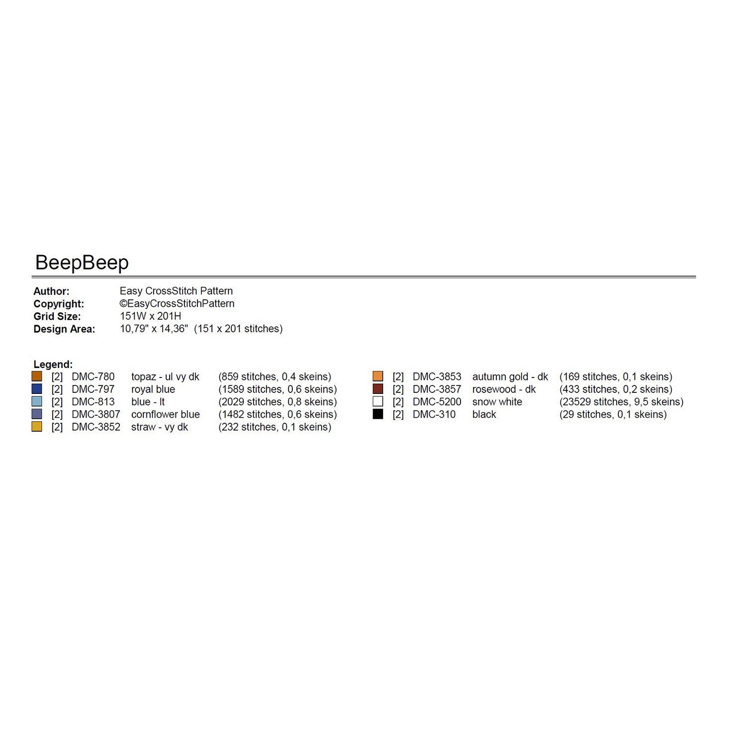 Number of needed skeins by color