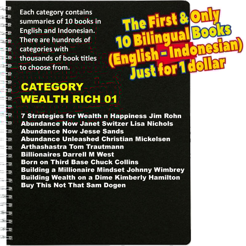 · Untuk 10 buku summary dalam 2 bahasa (English-Indonesian), hanya perlu 1 dollar saja, atau Rp.16.000,-