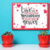 Love You More Than Yesterday ~ Yesterday You Got On My Nerves ~ This is a funny wall art that you could give to a sibling, best friend, ANYONE who you are close to. We all get on each others nerves at one time or another.
