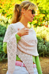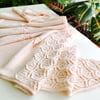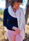 This beautiful lace motif immediately had me envisioning delicate rose petals. Those found on the Eden Rose can range from an almost white pastel pink on the outer edges, to a brilliant pink centre. The powder pink yarn was just perfect for it. Wearing Eden Rose wrap, knit in this sumptuous Alpaca/Silk blend, feels just as soft and luxurious as I’m imagining being immersed in a thousand rose petals would be!