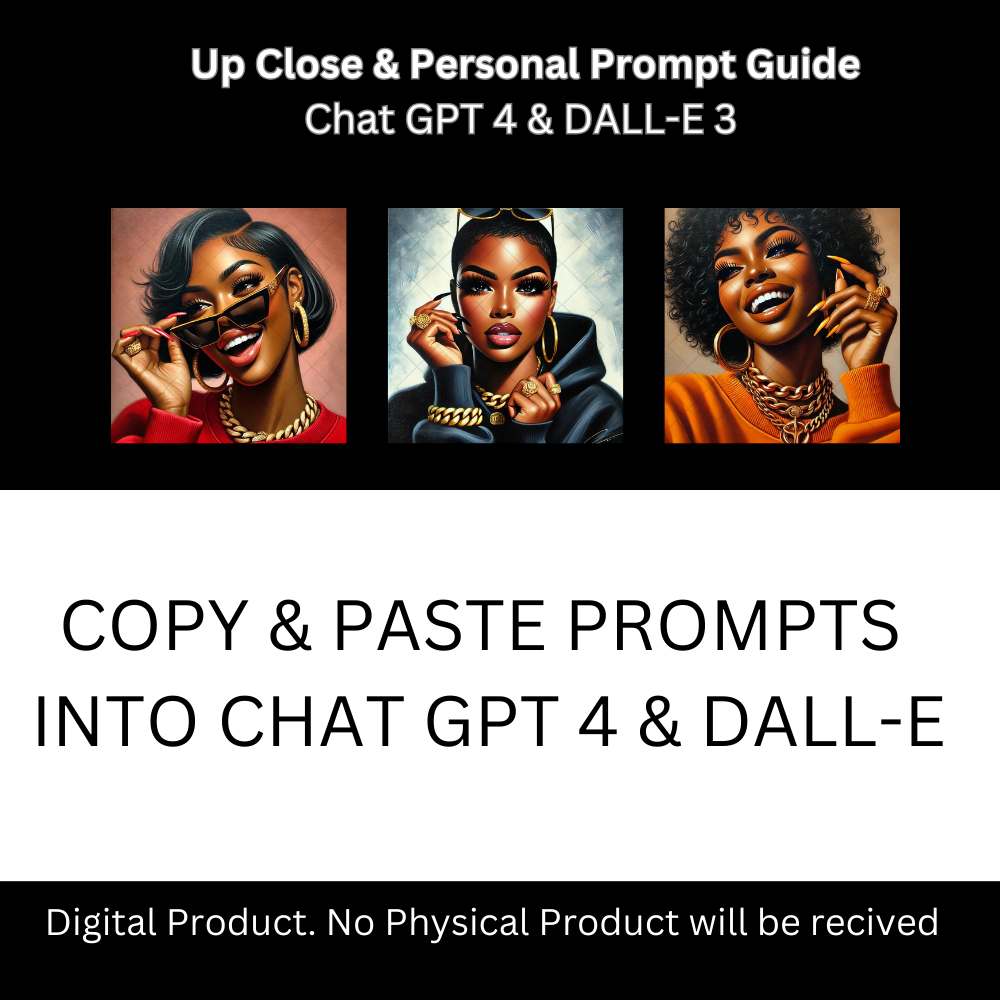 AI Art Prompt Guide - 15 Prompts & 15 Sample Images Chat GPT Dall-e 3 | Black Woman| African American| GPT Prompts | Digital Download