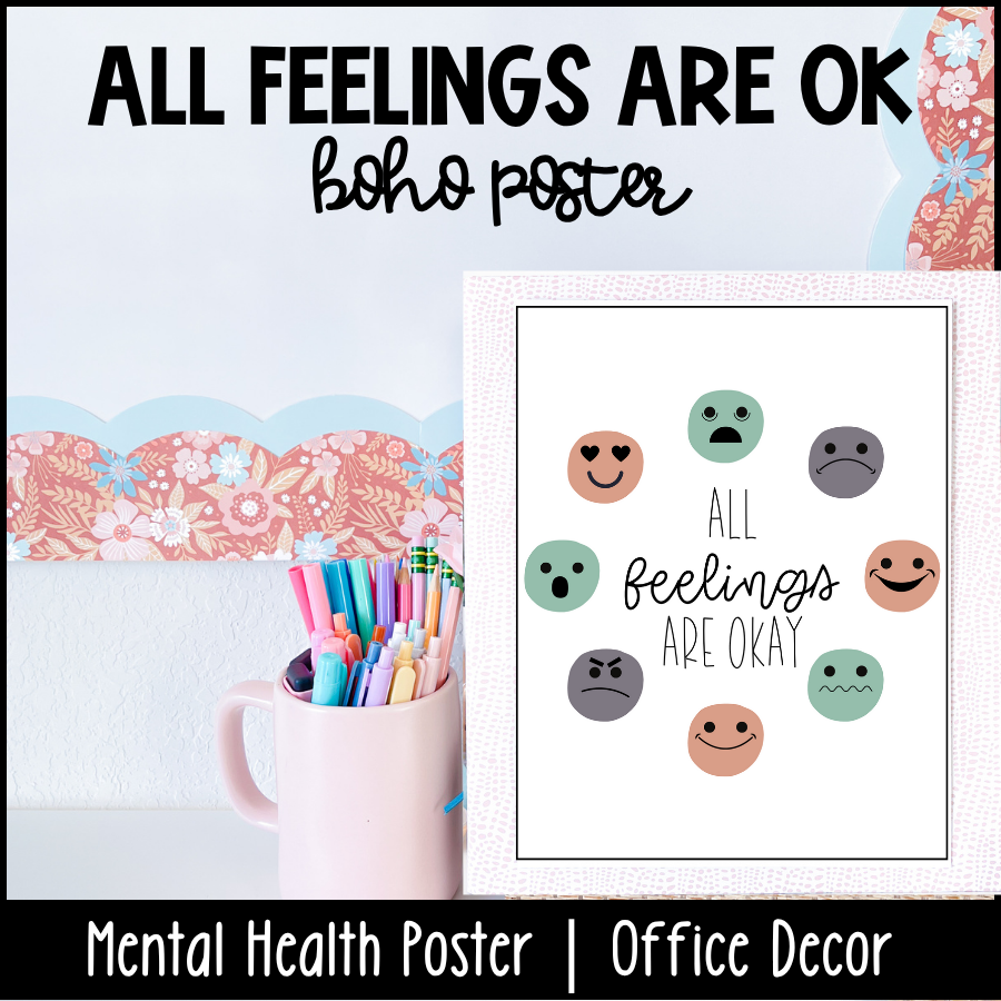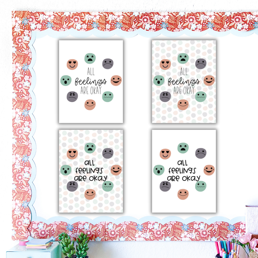 - All Feelings Are Okay Posters – 2 designs with alternate fonts and backgrounds (4 pages total) to normalize emotional expression