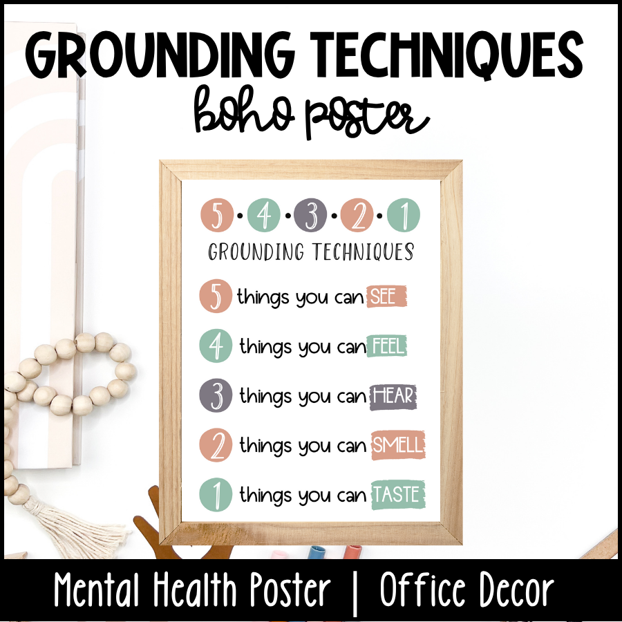- Grounding Techniques Posters – 3 calming designs to guide students through 5-4-3-2-1 grounding strategies