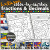 🎃 Halloween Fractions & Decimals Color-By-Code Worksheets