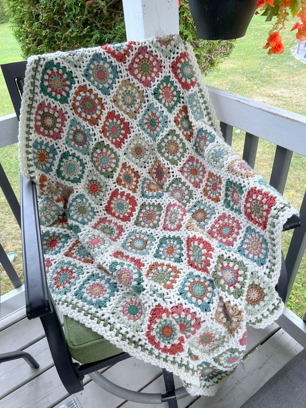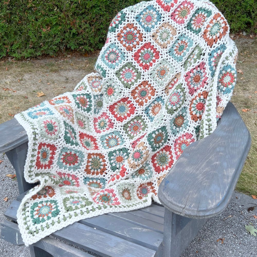 the sample blanket pictured is worked with 12 colours total,