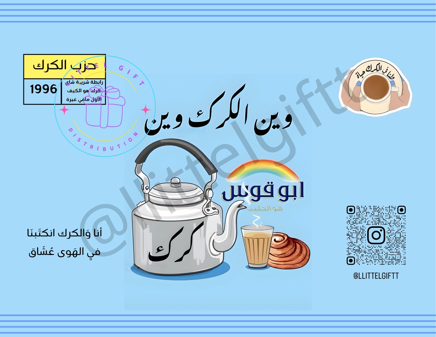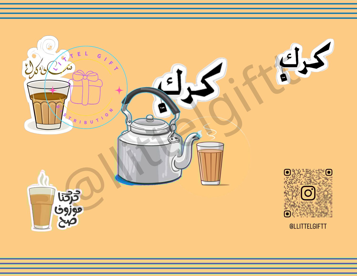 اما التصميم الخاص بالشاي كرك ف ممكن تحطون فية حبة حليب وسكر وملععقة وشاي ويتسكر