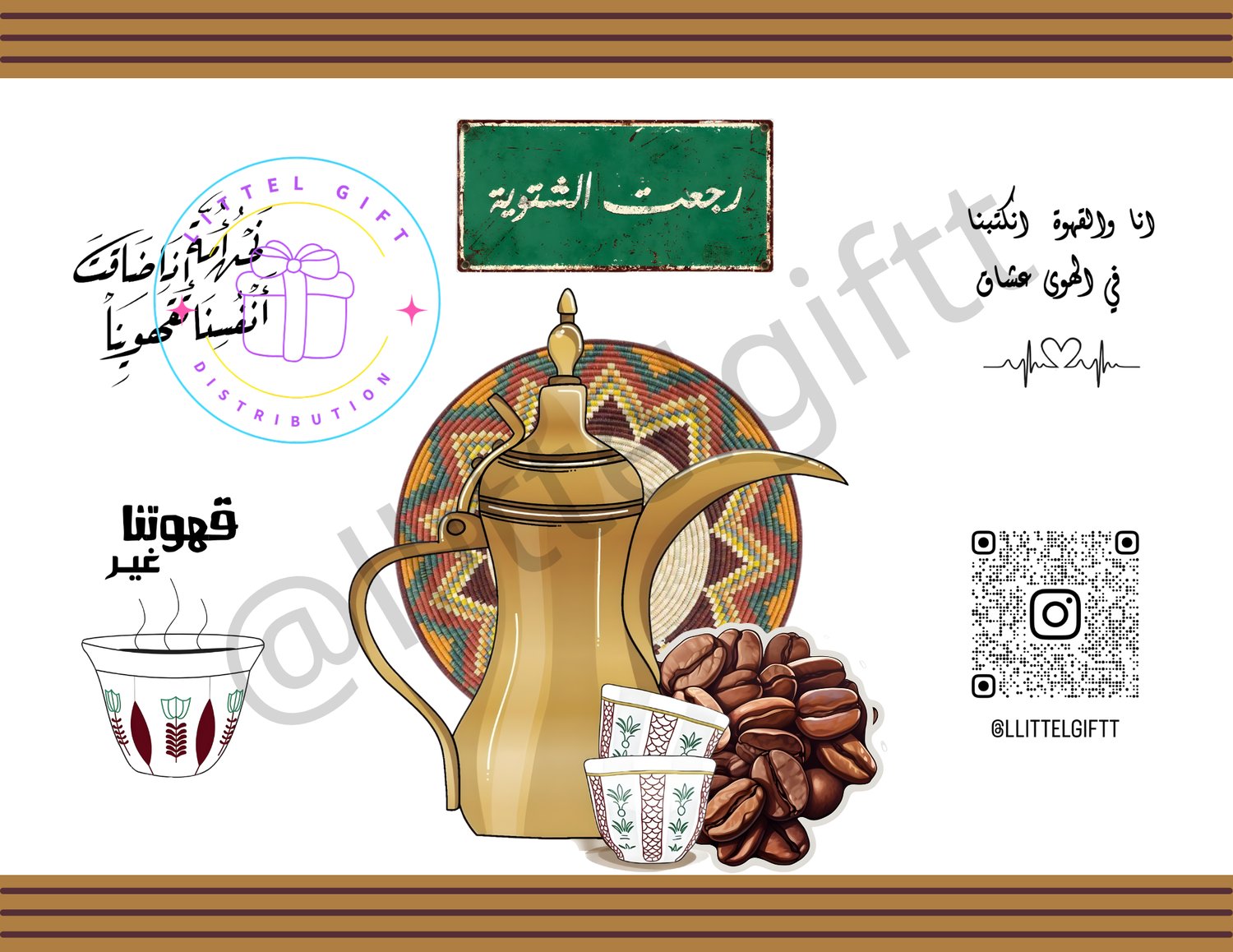 ف مثلاً : الأول تقدرون تحطون فية ظرف قهوة مع حبة تمر او جوكلت وتسكرونة ويصير توزيعة تهبل ومميزة