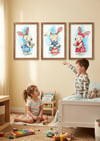 Set of 3 Watercolor Bunny Prints - Nursery Wall Art Decor - Cute Forest Animal Theme for Baby Boy or Girl Room