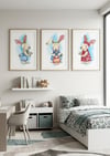 Set of 3 Watercolor Bunny Prints - Nursery Wall Art Decor