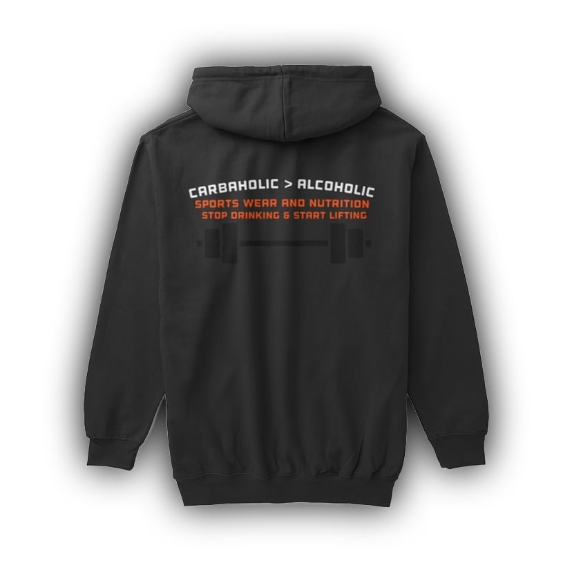 The Official "Carbaholic Alcoholic" Zip Up Hoodie. Perfect pump cover to wear in the gym and great for winter settings.