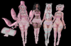 Body acces: Bear Glove, Body Ribbons, Thigh Bunny, Boob Kitty, Lanyard card, Candy ring, Necklace, Pasties, Hand ribbons, Hand straps