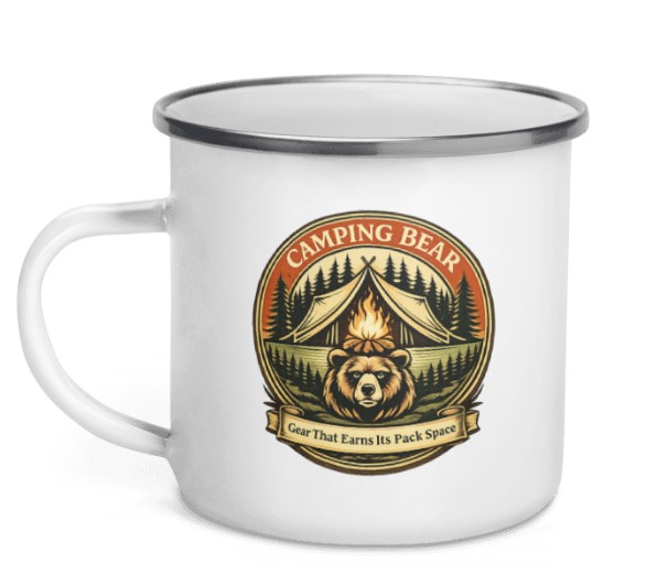 Finished with a classic silver rim and bold Camping Bear branding, this 12oz mug is made for gear that earns its pack space.