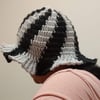 Swirls Hat: A two-toned bucket hat with a brim worked sideways, to create the cutest flounce! Easy difficulty.