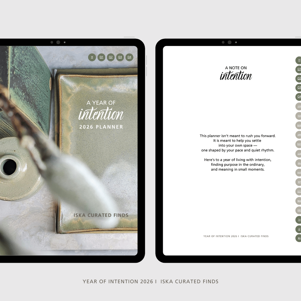 The Intentional Living Bundle brings together thoughtful digital tools designed to support calm planning, meaningful journaling, and gentle daily check-ins. Each piece is designed in the minimalist and reflective aesthetic of Iska Curated Finds, encouraging a slower, more intentional rhythm to everyday life.