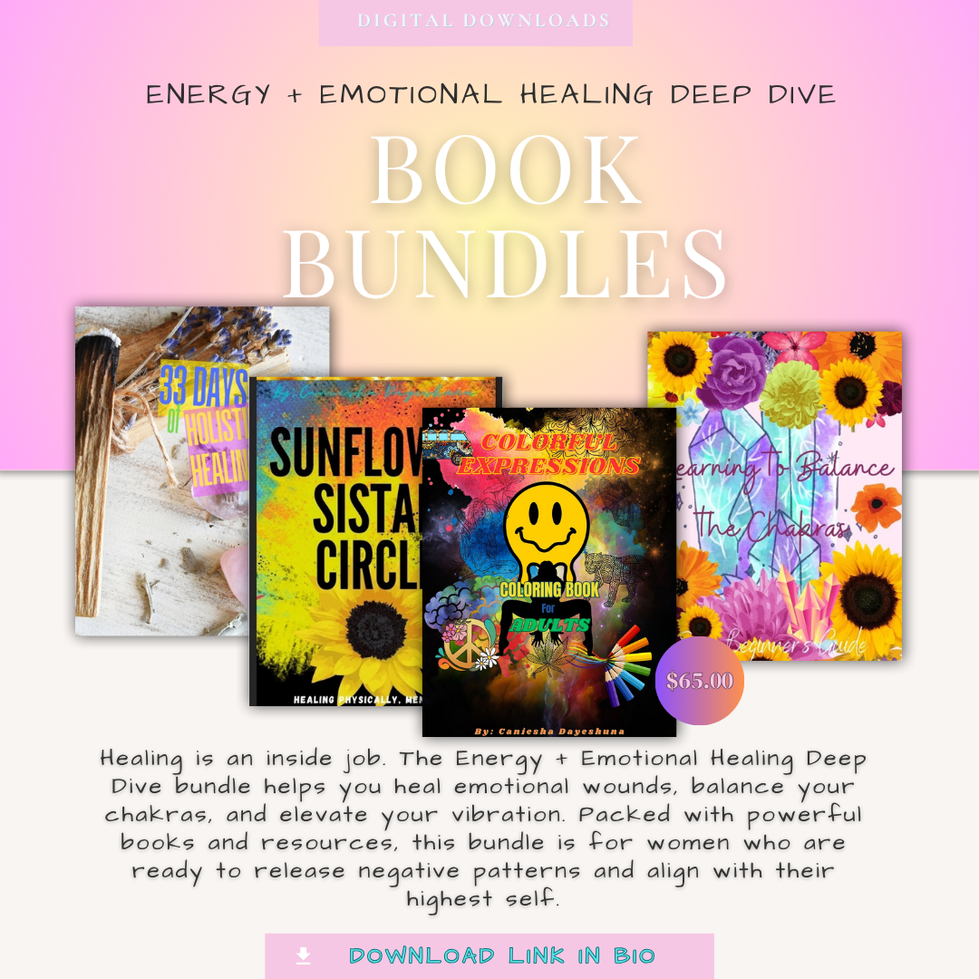 Healing is an inside job. The Energy + Emotional Healing Deep Dive bundle helps you heal emotional wounds, balance your chakras, and elevate your vibration. Packed with powerful books and resources, this bundle is for women who are ready to release negative patterns and align with their highest self.