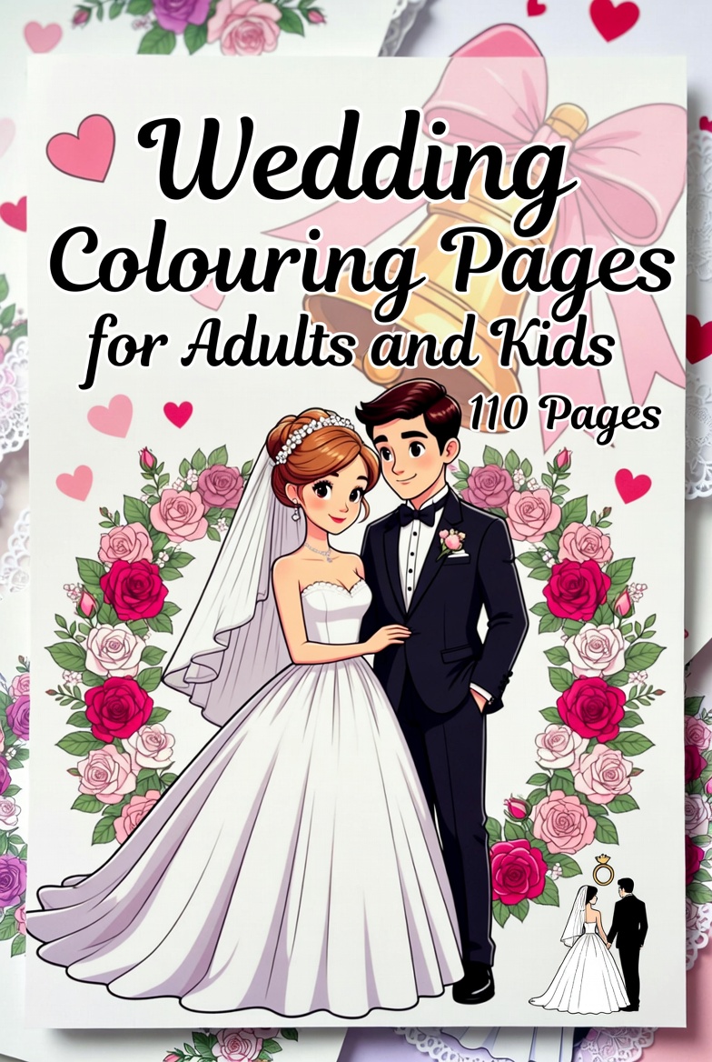 Celebrate love with this beautiful 110-page Wedding Colouring Book, perfect for both adults and kids. Filled with romantic bride & groom scenes, floral bouquets, wedding cakes, rings, and reception moments, these pages make a wonderful activity for bridal showers, engagement parties, and wedding receptions. Simply download, print, and start colouring at home – no shipping, no waiting. Ideal for stress relief, family fun, and DIY wedding entertainment, this popular digital colouring bundle is ready to enjoy instantly as a high-quality PDF.