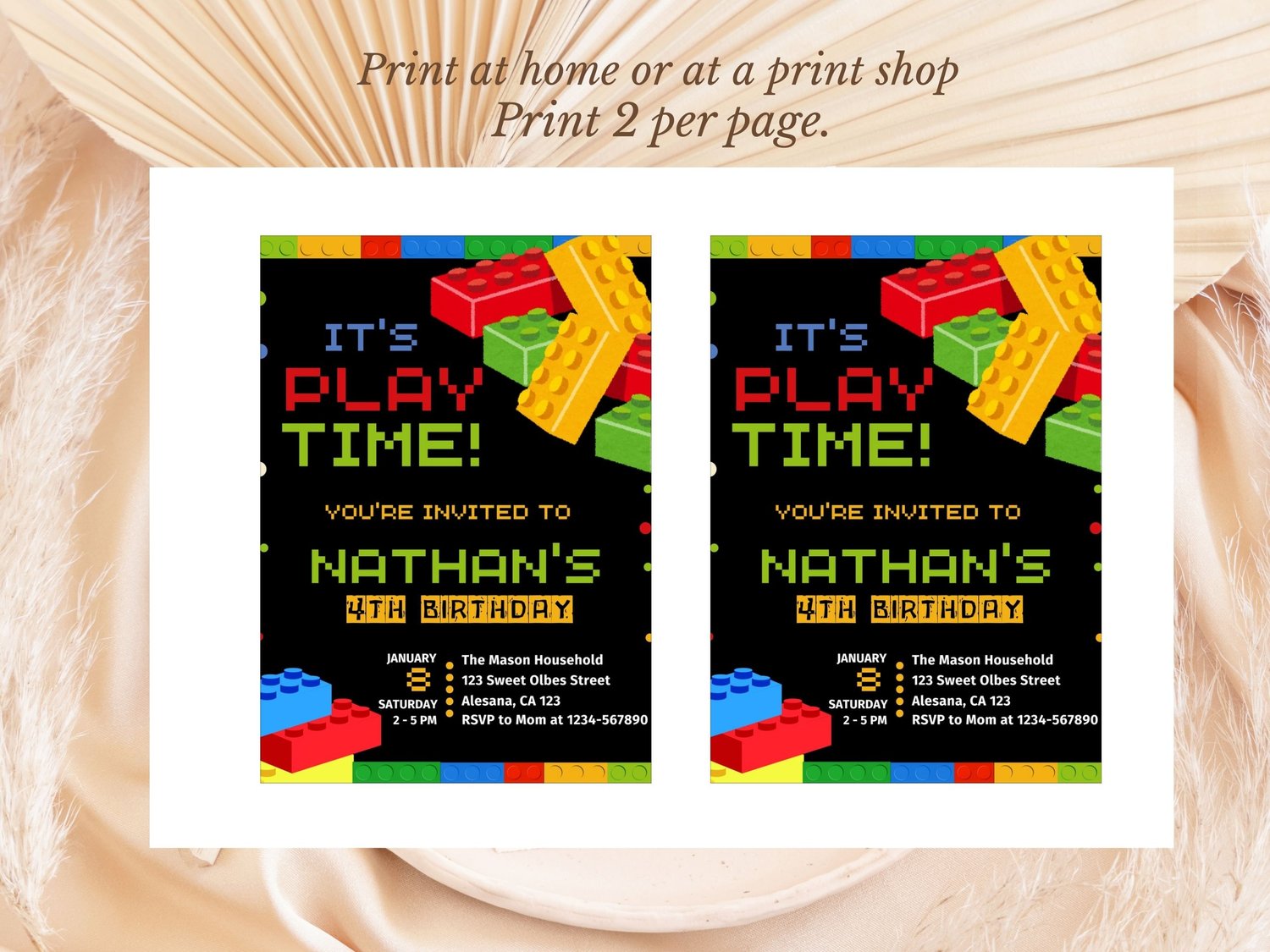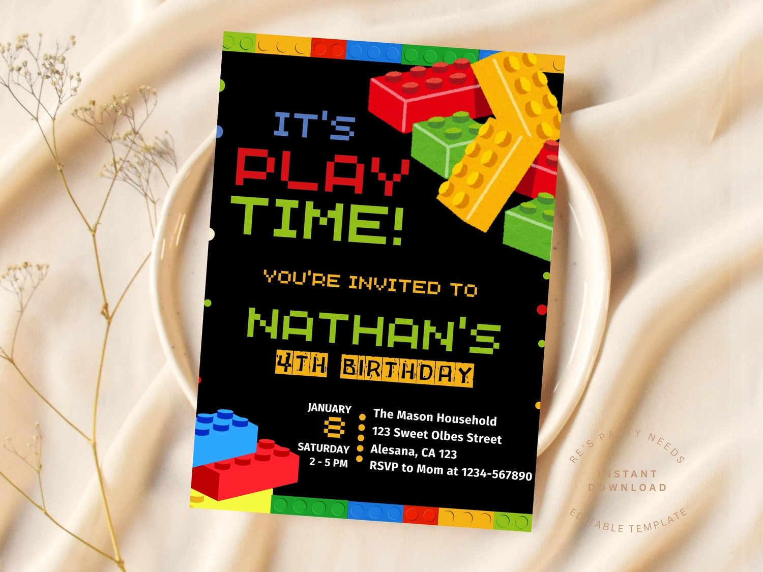 Lego Themed Birthday Invitation, Lego Invitation, Building Blocks Birthday, Building Bricks,