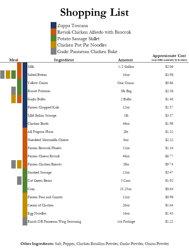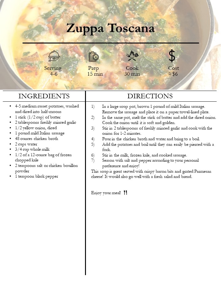 I've also added the approximate serving size, cooking time, and cost. Enjoy!
