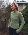 Bold is a comfy cropped sweater with fun texture detail on the extra-long sleeves. It is knit top-down, stockinette-side out, on large needles. Weave ends in carefully, and it becomes a completely reversible garment.