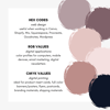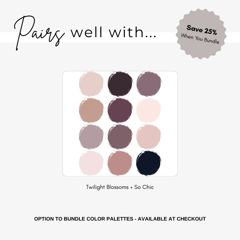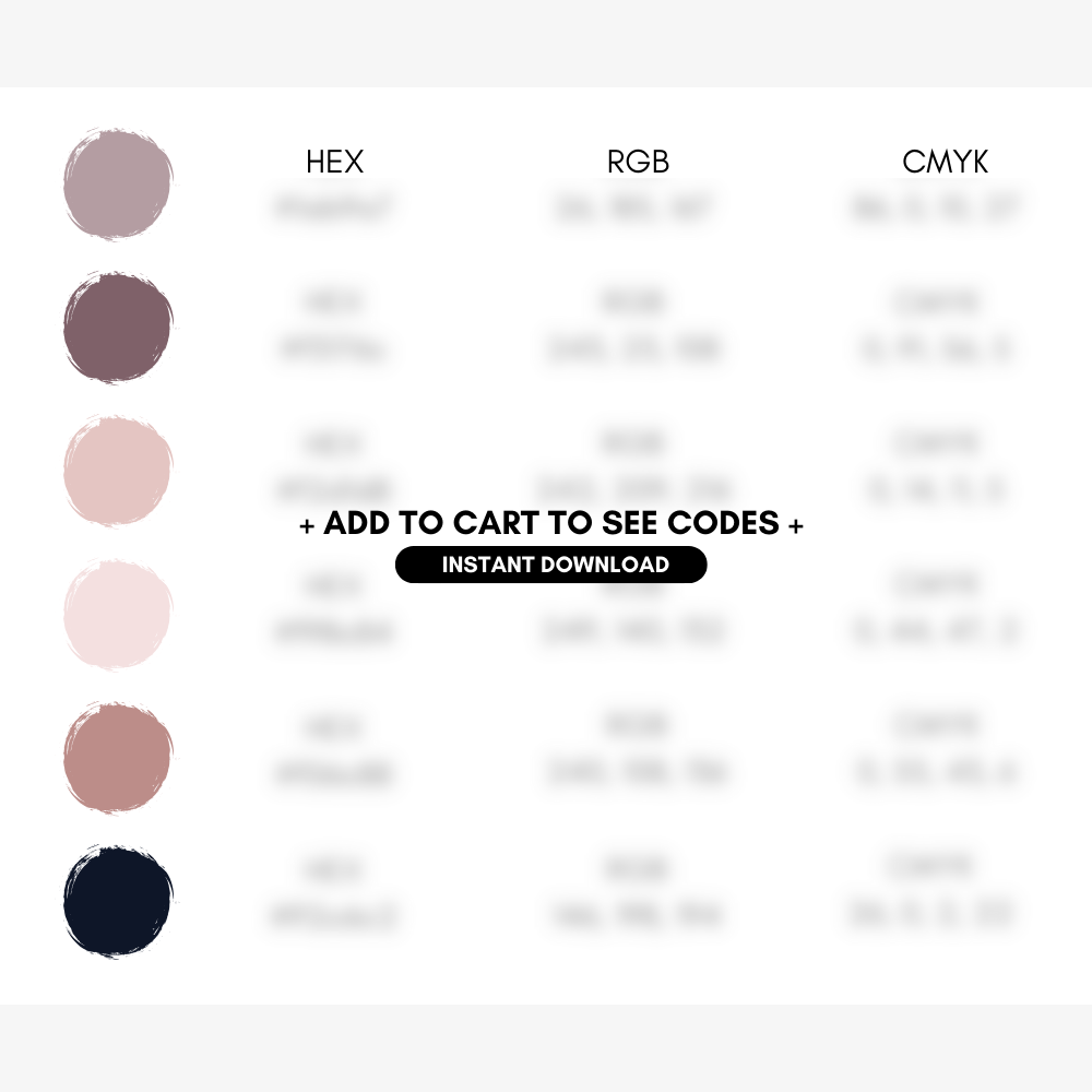 Introducing the So Chic Color Palette – a sophisticated blend of bold tones and elegant hues that bring your brand to life! This curated collection features the warm and inviting shades of taupe, ash purple, dusty rose, blush pink, brandy rose, and dark navy blue. Perfect for small business owners and creatives looking to establish a cohesive and stylish brand identity, this palette is ideal for websites, logos, and banners. Whether you're designing in Canva, Procreate, or any other design platform, these colors will elevate your branding effortlessly. Our kit includes exact Hex Codes, RGB, and CMYK values to ensure consistent application across all your branding materials. Transform your social media presence and design projects with this versatile color scheme, tailored to make your brand stand out with understated elegance. Instantly download your So Chic digital color palette today and start crafting captivating visuals that speak to your audience!