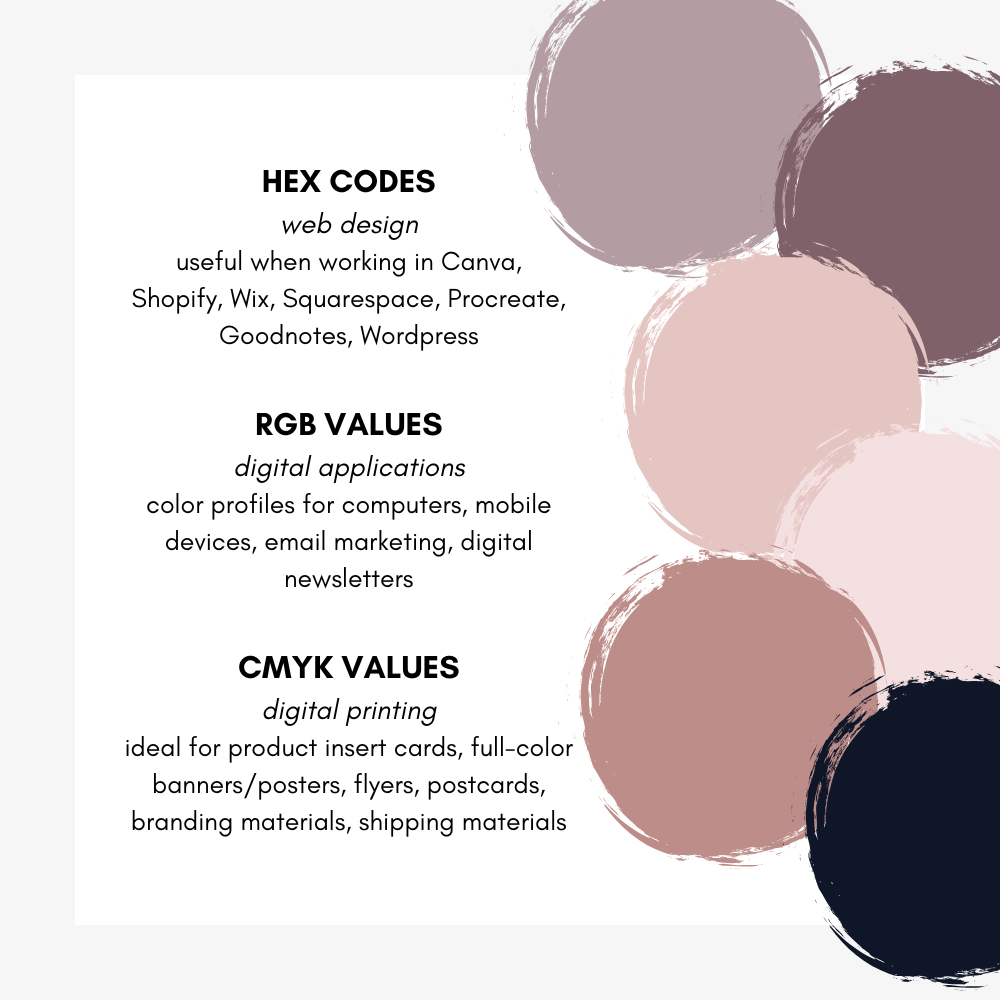 + Detailed Hex Codes, RGB, and CMYK values for each color