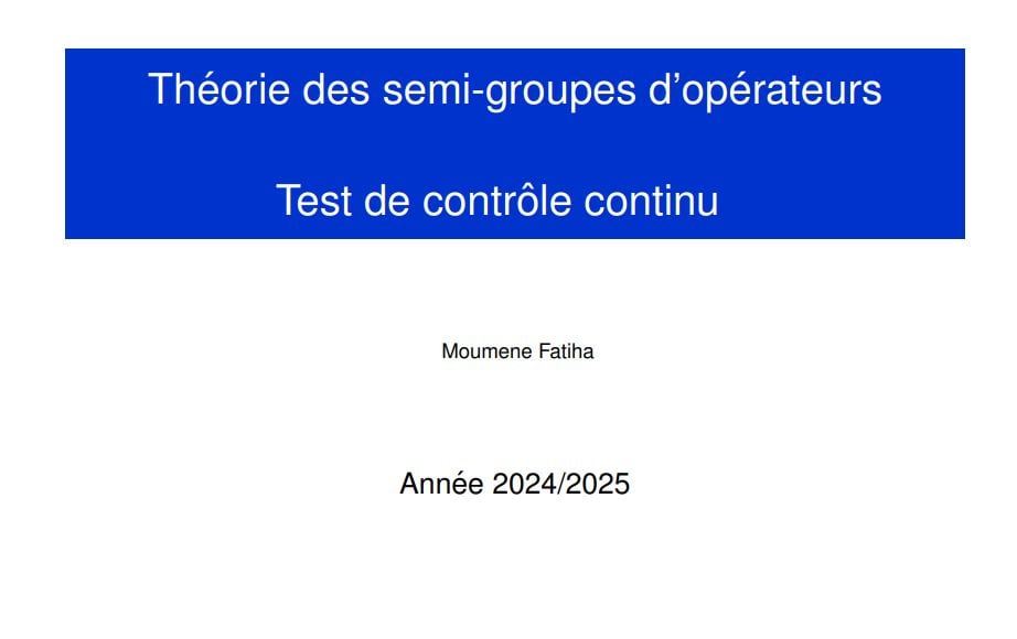 📘 Test de contrôle continu : Théorie des semi-groupes d’opérateurs (Master 2)