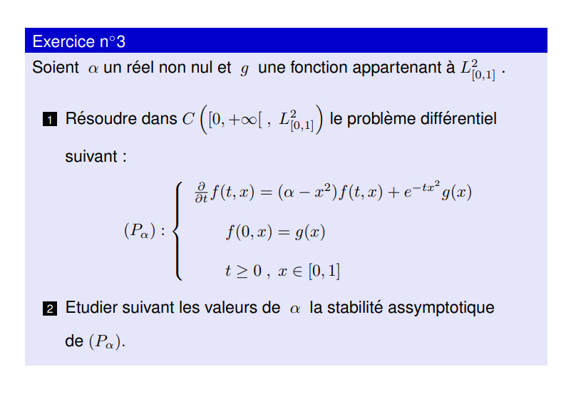 Théorie des semi-groupes d’opérateurs- Test de contrôle continu