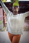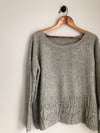 City Limits is knit from the bottom up, in the round, with a graphic twisted stitch motif around the bottom half of the body. The front and back are separated at the armholes and worked flat. The shoulders are joined with a three needle bind off, then sleeves stitches are picked up and knit inside out to the cuffs. The neckline stitches are picked up and knit in half twisted rib.