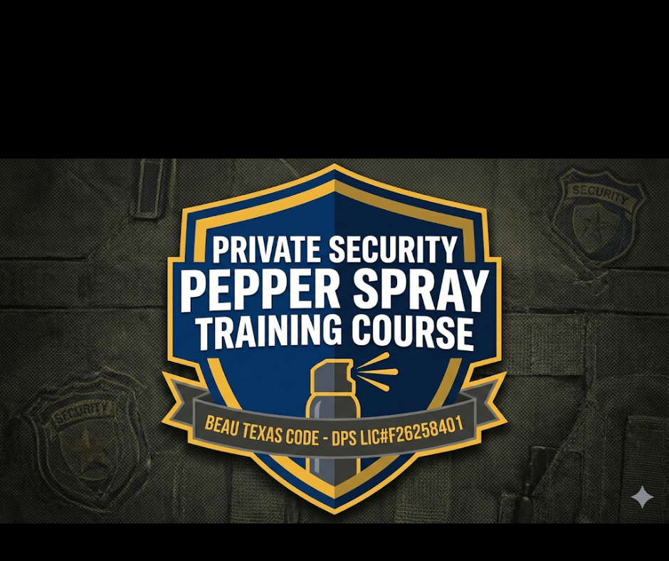 Texas State approved training course on the usage of Pepper Spray. Each student that successfully passes the course will be issued a certificate of Training.