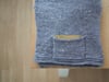 Relaxed V-neck sweater with drop shoulders, ¾ length sleeves and a little hidden pocket, worked in contrasting color. The upper body is worked back and forth, the rest of the body and sleeves in the round. The edge of the V-neck is left unfinished.