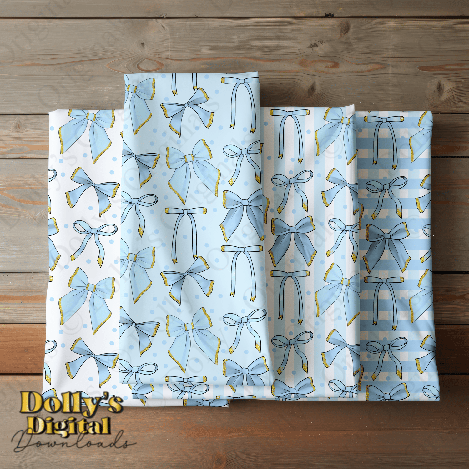 Includes the Four Light Blue Coquette Bows Seamless Patterns PNG tiles (4 PNG’s)