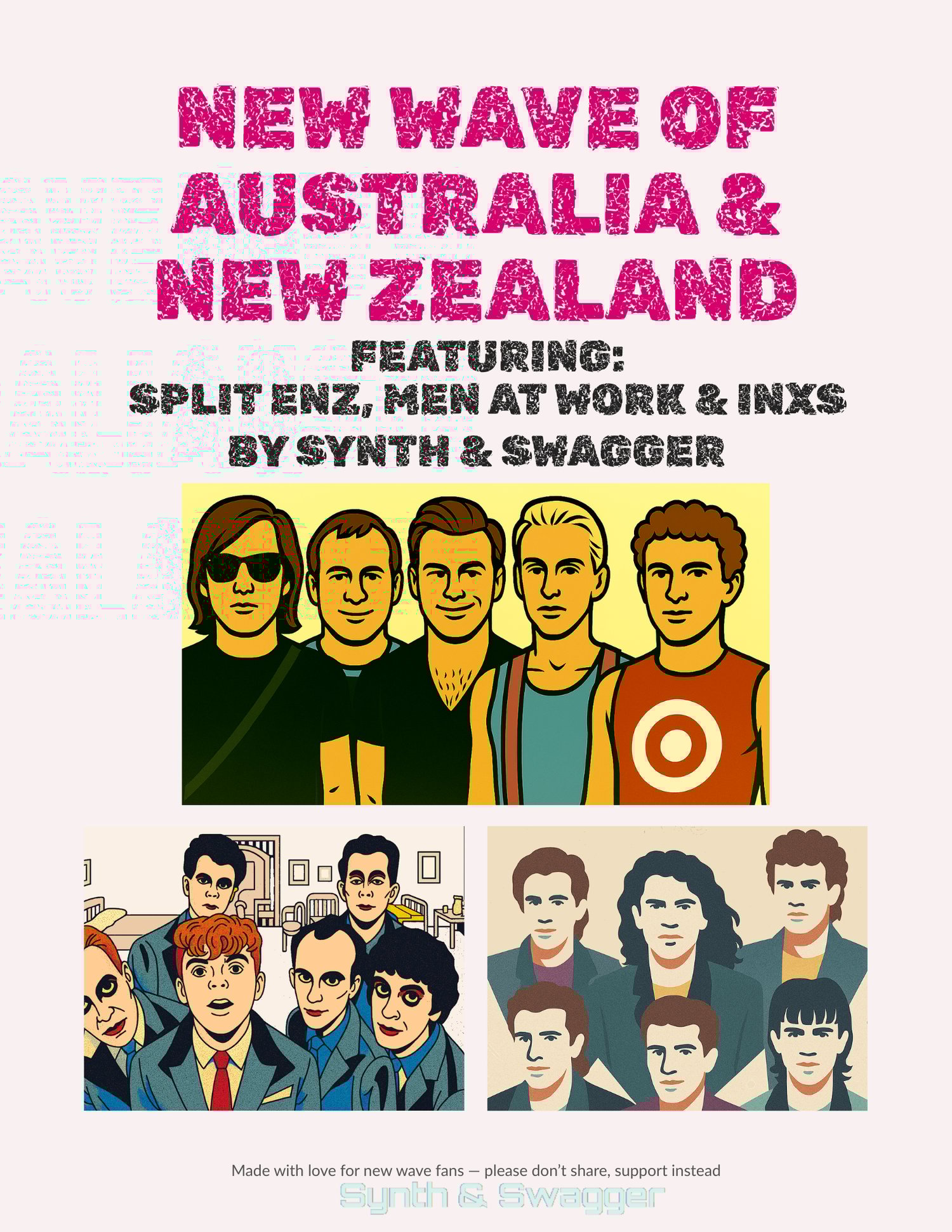 From pub stages to global charts, Australasia’s new wave scene packed muscle and style. Split Enz, Men at Work, and INXS fused sharp hooks with swagger, wit, and lyrical bite—while Icehouse and Pseudo Echo added sleek textures. Discover how these acts turned local grit into international cool.