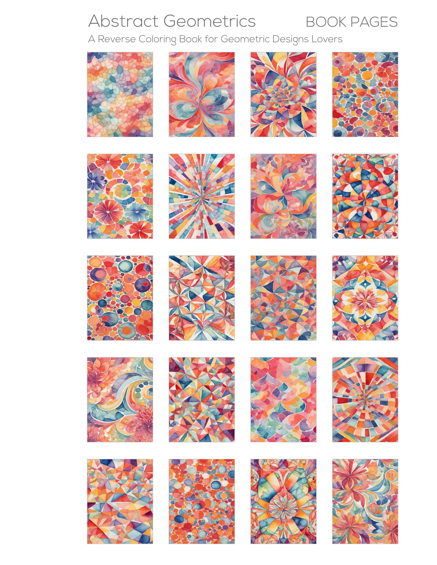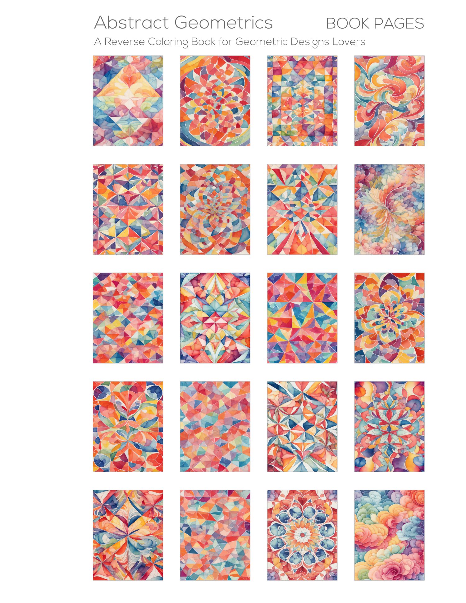 - each page holds the promise of a transformative journey, where users can unleash their creativity and bring these geometric designs to vibrant life through color and contrast.