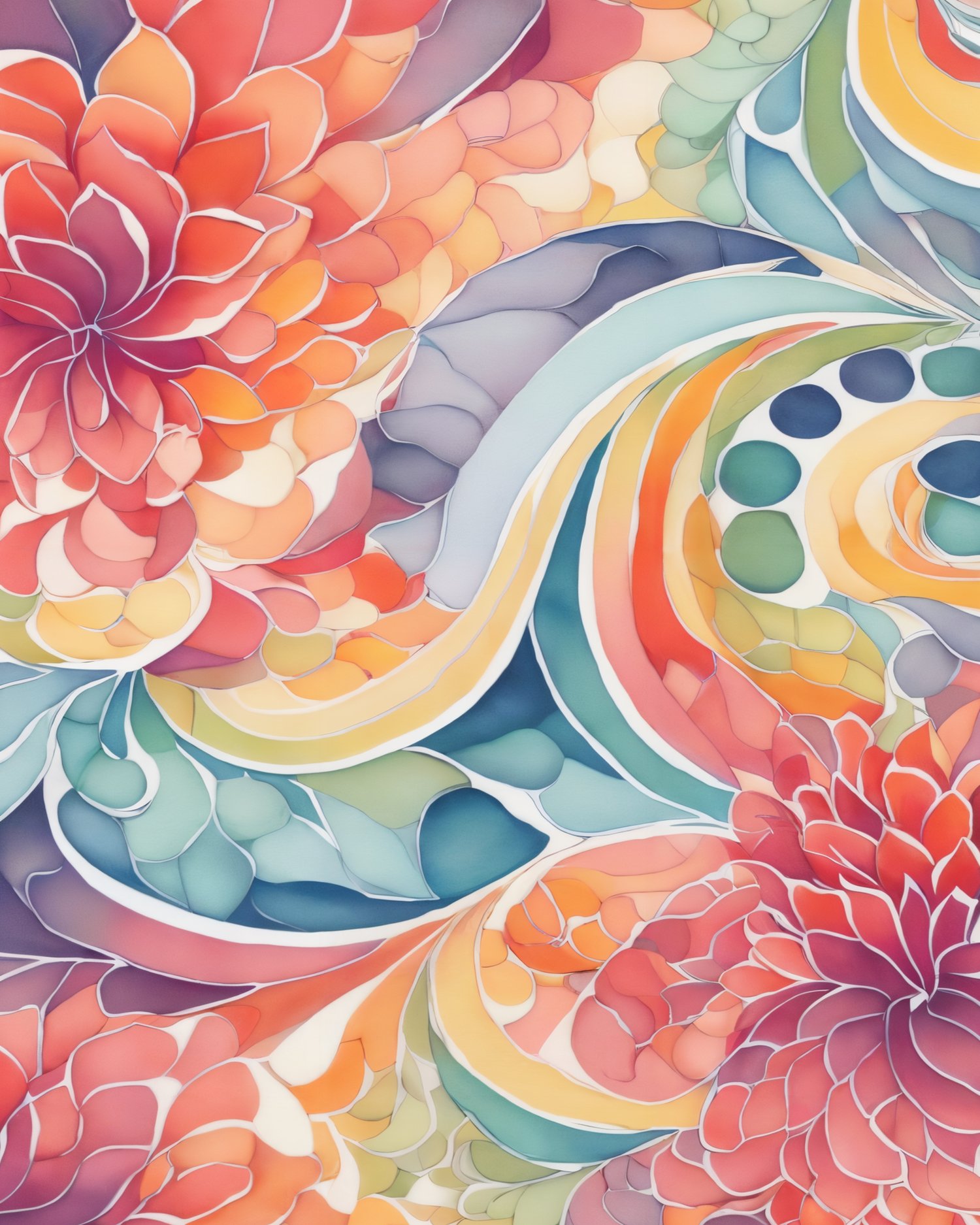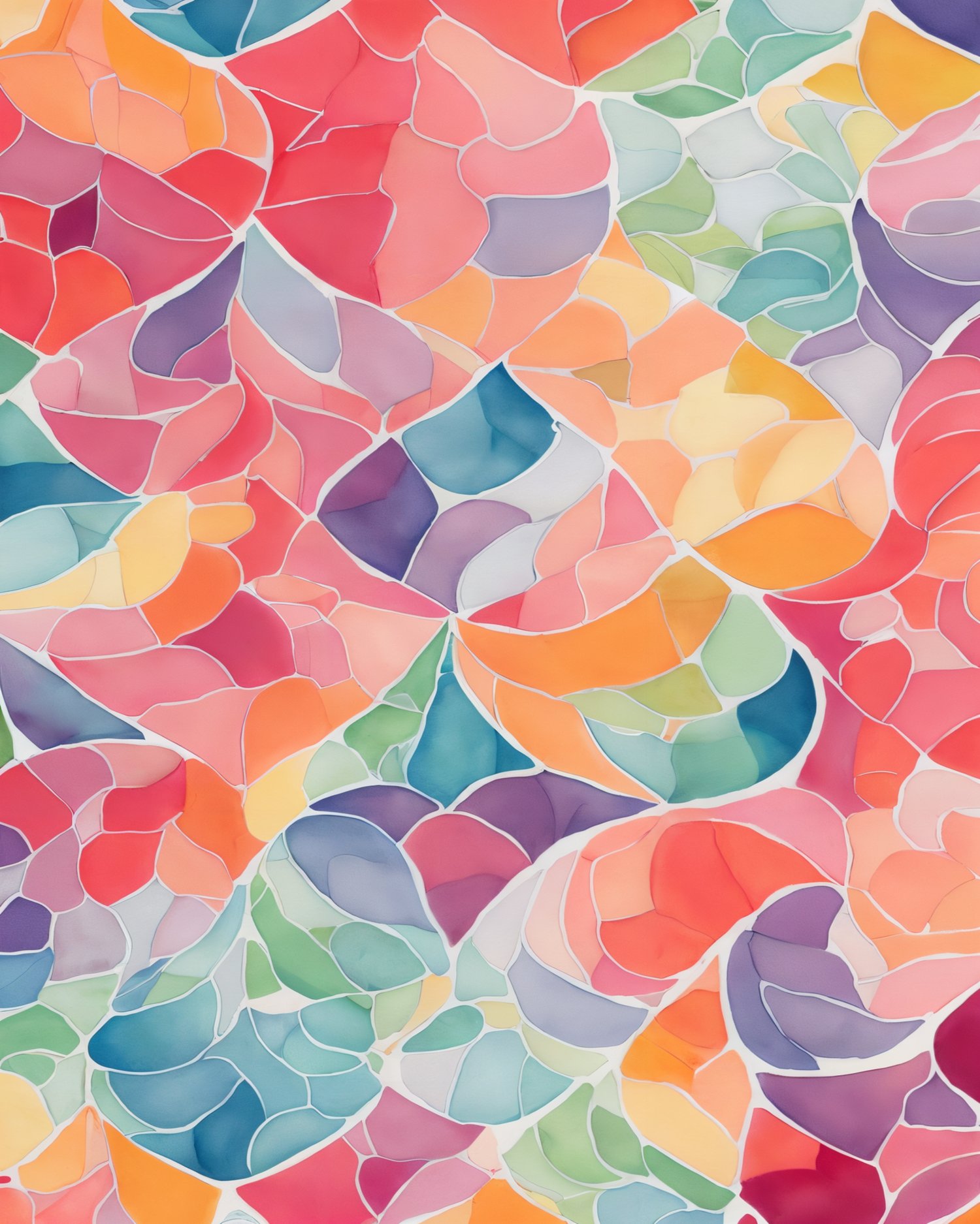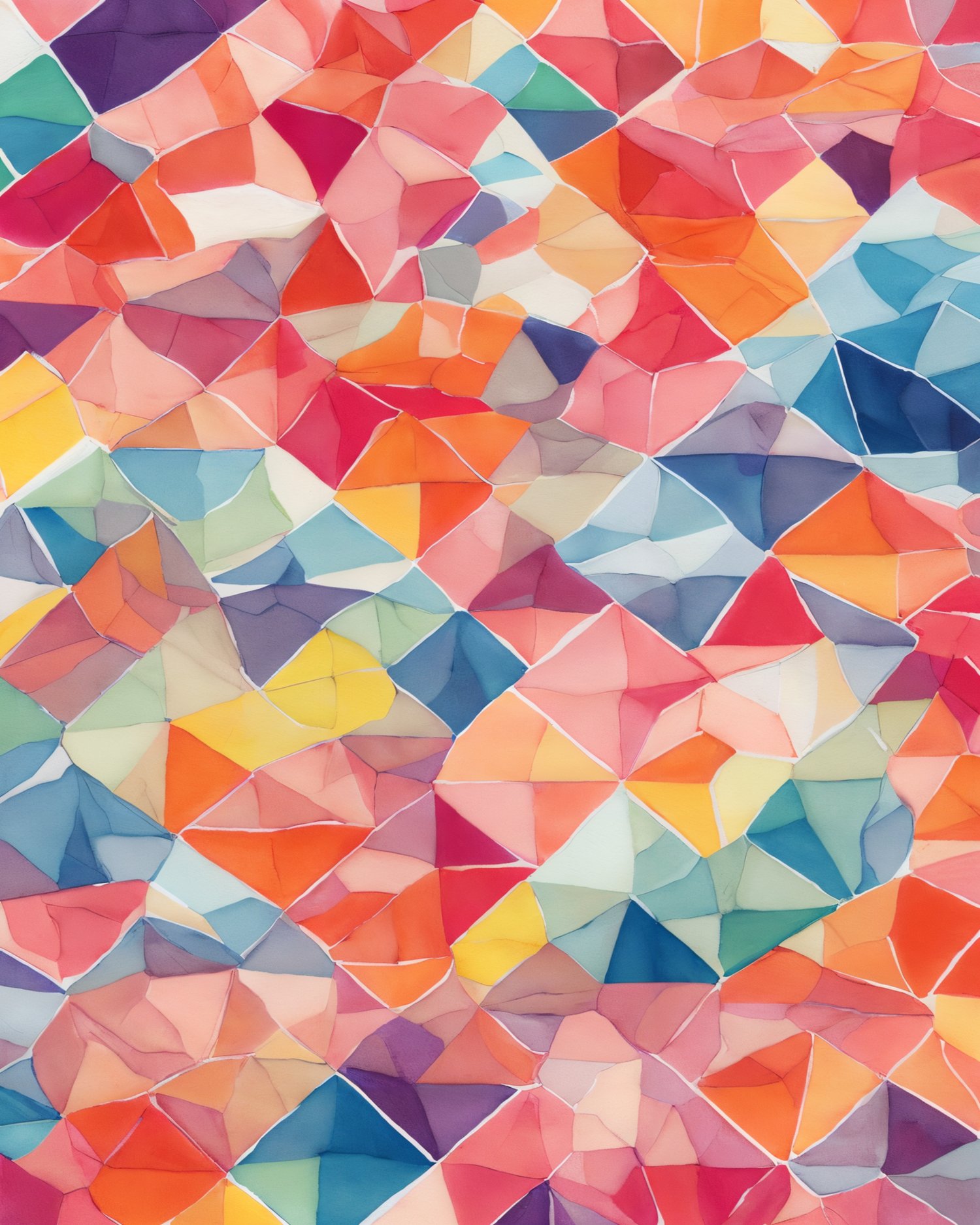 - all geometric designs are showcased in bright watercolors, set against light backgrounds, bringing them to life;