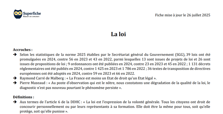 Fiche de préparation aux concours administratifs publiée par Superfiche.