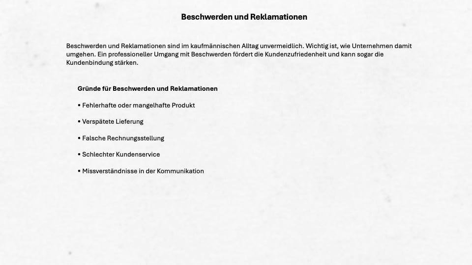 Hier findest du alle Folien zum Thema Beschwerden und Reklamation
