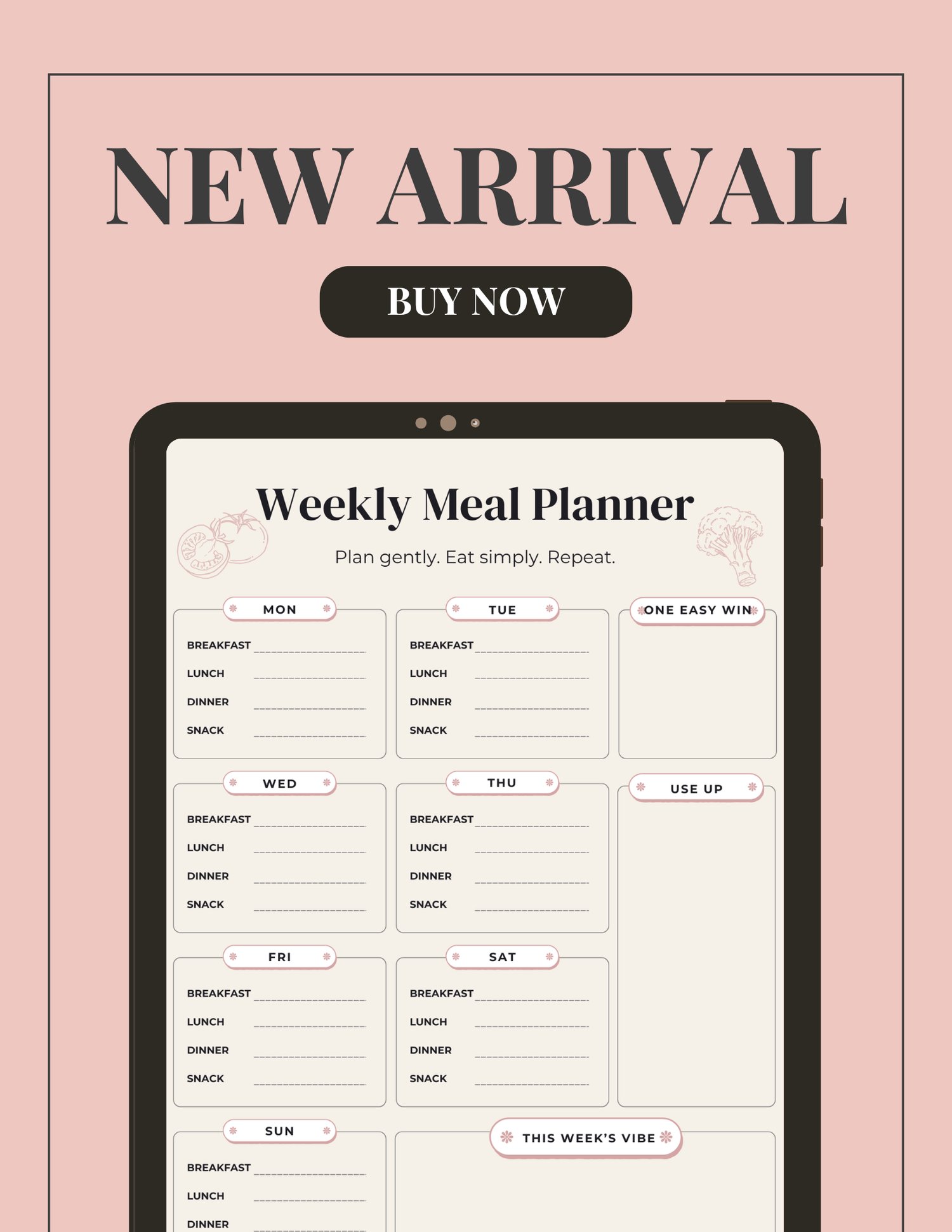 This minimalist Weekly Meal Planner Mini Bundle is designed to help you organize your week, simplify grocery shopping, and reduce mental clutter—without rigid rules or overwhelm.